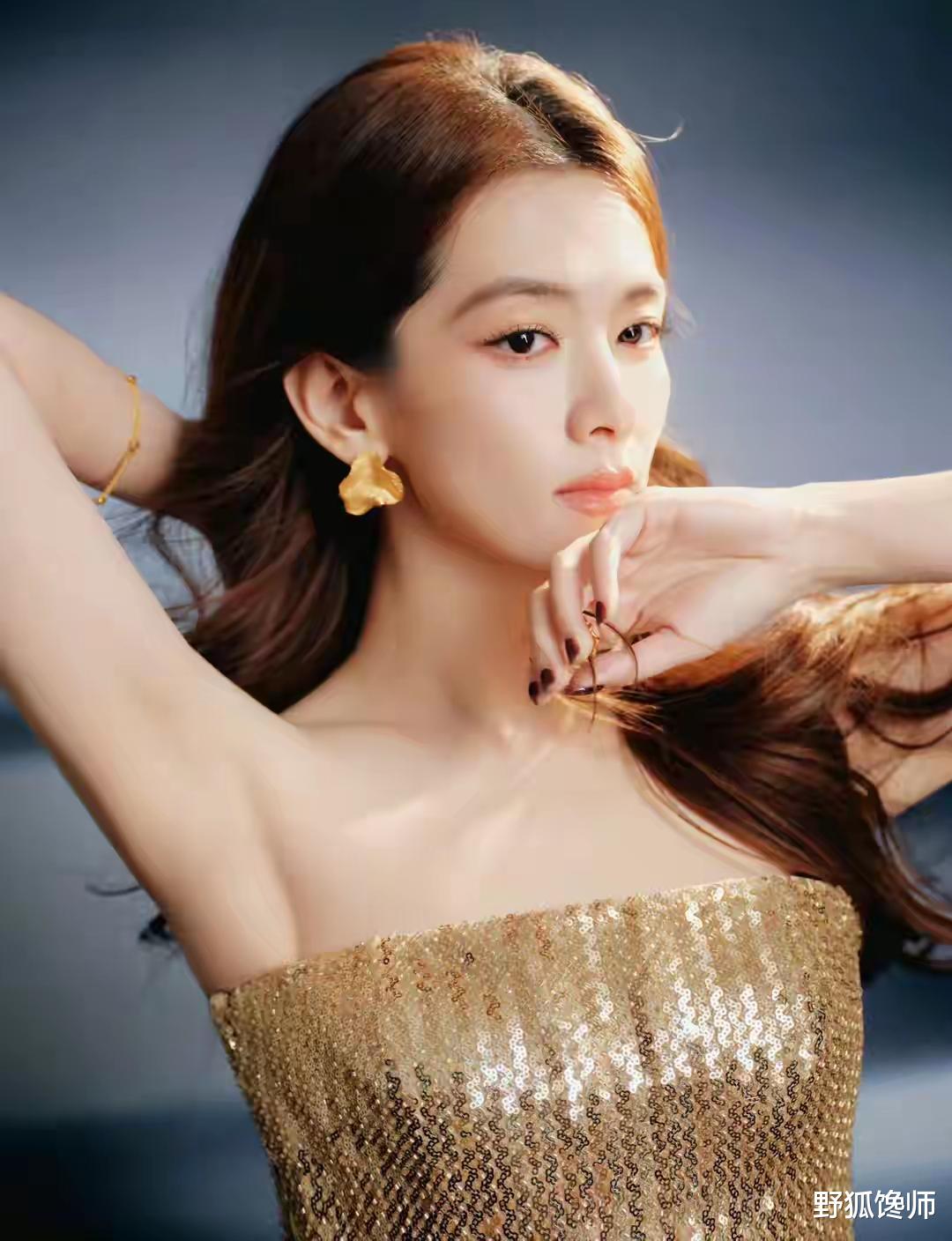 她的颜值核心在于优越的骨相支撑。作为典型的方圆脸,其下颌线条清晰流畅,眉骨与颧骨轮廓分明,即便脸颊因清瘦略带凹陷,反而强化了面部立体感,让镜头表现力更具优势。五官排布暗合古典美学的“三庭五眼”标准,额头开阔如宣纸,鼻型虽鼻头偏宽却与面部比例协调,增添了几分娇憨感,而深邃的眼神又能弱化这份圆润,形成刚柔并济的视觉平衡。她的美并非一眼惊艳的浓烈款,而是低饱和度的“浅秋型”美感,黑发与肤色、唇色的对比度柔和,宛如被晨光柔化,却在清晰骨相的衬托下绝不扁平,静态时如宋代工笔仕女般端庄,动态时又因灵动眼神尽显鲜活。这种特质让她既能驾驭《如懿传》中叶赫那拉·意欢的清冷古典妆造,也能hold住米兰时装周的现代简约造型,辨识度极高。