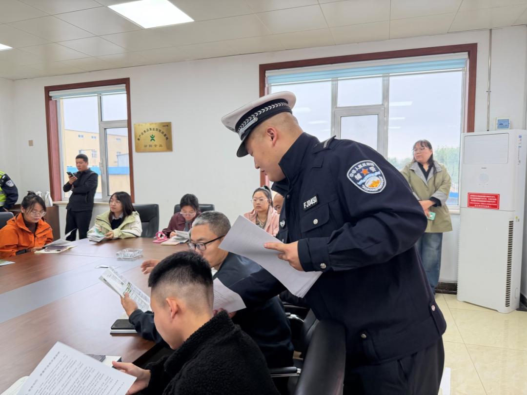 活动中,民辅警通过举办交通安全培训讲座、播放典型事故案例视频等方式,直观展示疲劳驾驶、超速行驶等交通违法行为的严重后果;结合企业运输车辆运营及员工通勤特点,重点讲解 “一盔一带” 安全防护的重要性,引导企业员工在上下班出行中严格遵守交通法规、文明出行。同时,现场发放交通安全宣传资料、悬挂宣传条幅,营造浓厚宣传氛围。