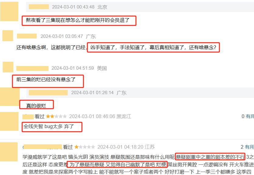 就在大家对悬疑剧市场失去信心的时候,陈思诚出手了。网剧版《唐人街探案2》空降定档,首播三集便斩获飙升榜第一。然而,评论区的差评如潮水般涌来:“垃圾中的垃圾”、“烂梗,为了悬疑而悬疑”、“剧本差的不行”。观众的失望溢于言表,甚至有人表示熬夜看了三集后,想“怎么才能把刚开的会员退了”。