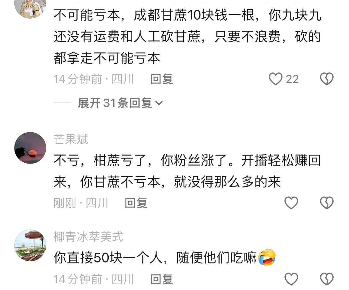 但是有网友在评论区说根本不会亏,剩下的甘蔗可以装盒卖掉,不过这种行为的确不好。