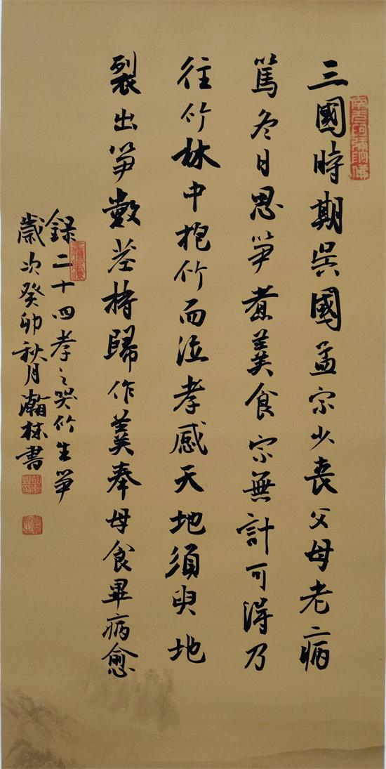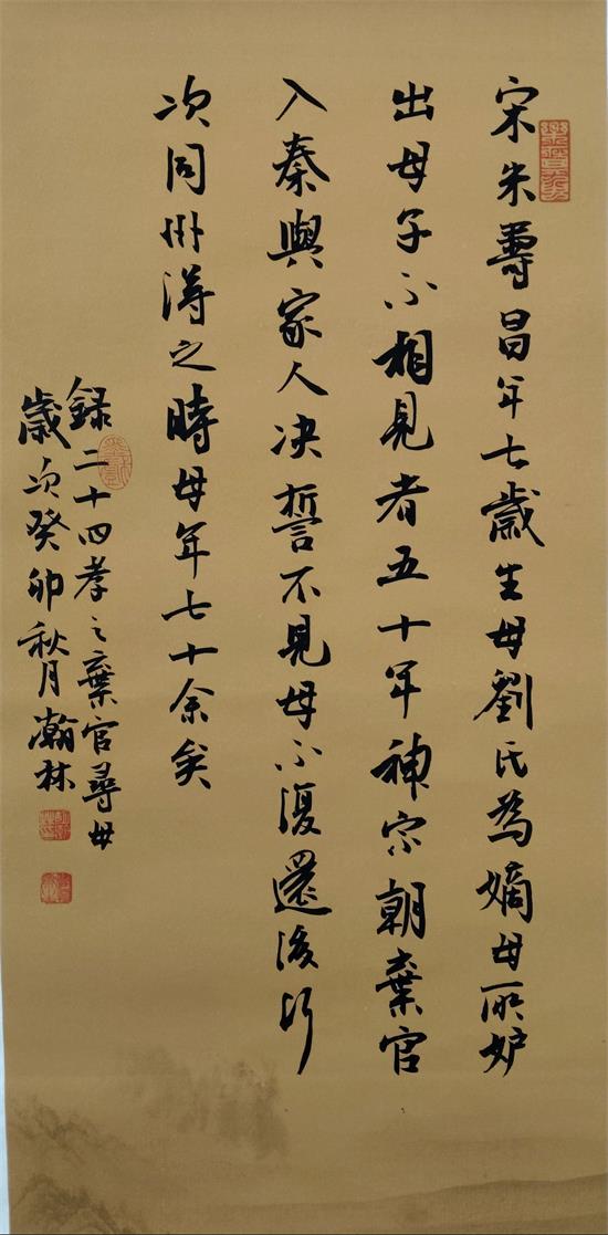 更为可贵的是,先生的艺术始终坚守“德艺双馨”的准则。他不仅以精湛技艺赢得“中国当代百名优秀书法家”等诸多称号,更以谦和品格与文化担当获得业界敬重。其作品多次在中国美术馆、国家博物馆等顶级场馆展出,远播泰国、法国、比利时等国家和地区,两次荣登“国家名片”邮票,雅昌拍卖会上的中堂作品以六万元成交,既彰显了市场对其艺术价值的认可,更见证了传统文化的强大生命力。从吉林卫视《聚星汇》的现场挥毫到齐齐哈尔市美术馆的个人画展,从《光明日报》的专栏刊载到两会会刊的收录推介,先生以实际行动践行着“让传统艺术走进当代生活”的使命。