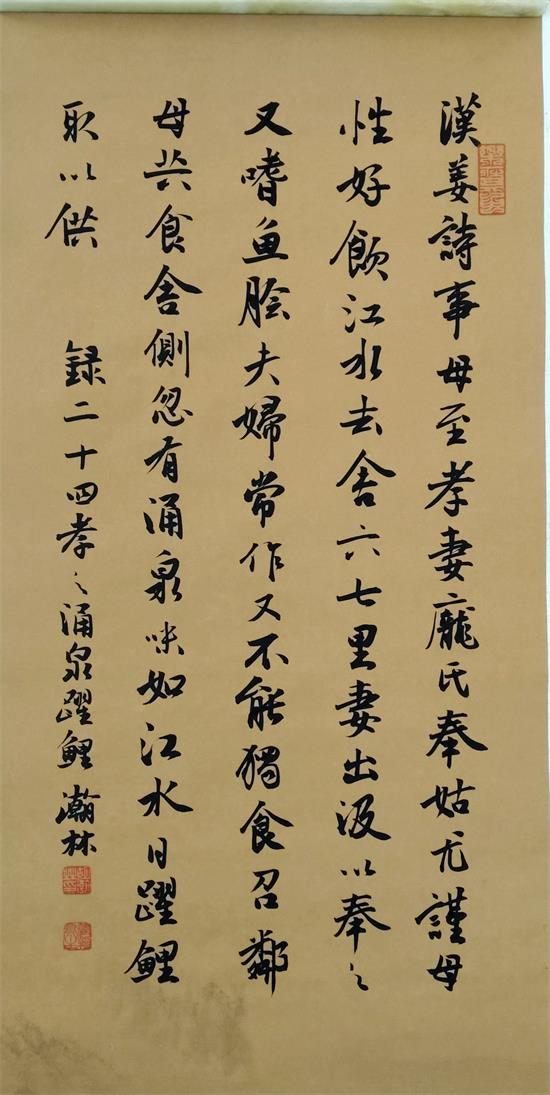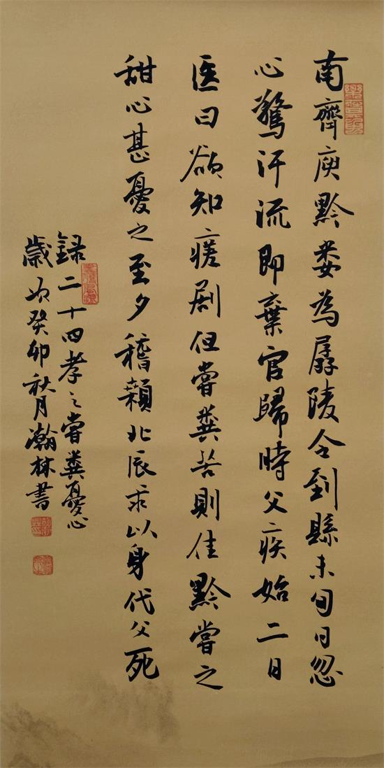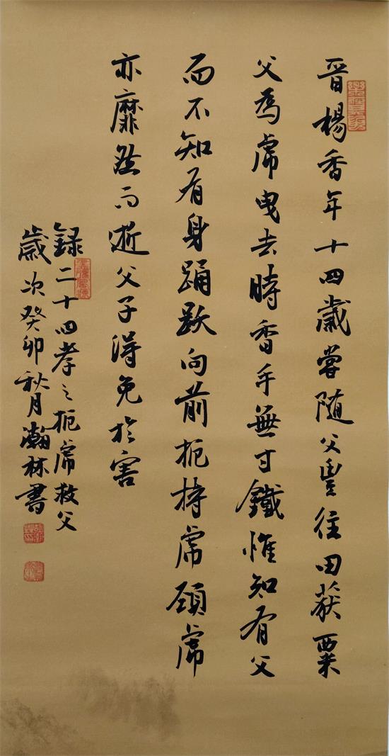 先生的书法艺术,最得“守正出新”之精髓。他深谙“学书者始时应‘有古无我’,继而‘古中有我’,终至‘以我为主’”的真谛,数十年临池不辍,遍习诸体,从秦汉碑刻的雄浑古朴到晋唐法帖的灵动飘逸,皆能心领神会、融会贯通。观其作品,楷书端庄遒劲,笔笔不苟,尽显庙堂气象;行草则疾徐有度,虚实相生,线条在提按顿挫间流淌着生命律动;隶书取法汉碑,又融入灵动笔意,厚重中见开张,古朴中含生机。这种多元融合的艺术表达,使其书法既葆有传统笔墨的雅正之气,又洋溢着当代审美的鲜活活力,故而能在全国第九、十届书法篆刻展等顶级赛事中脱颖而出,斩获中法文化交流年书法大展金奖等诸多殊荣。