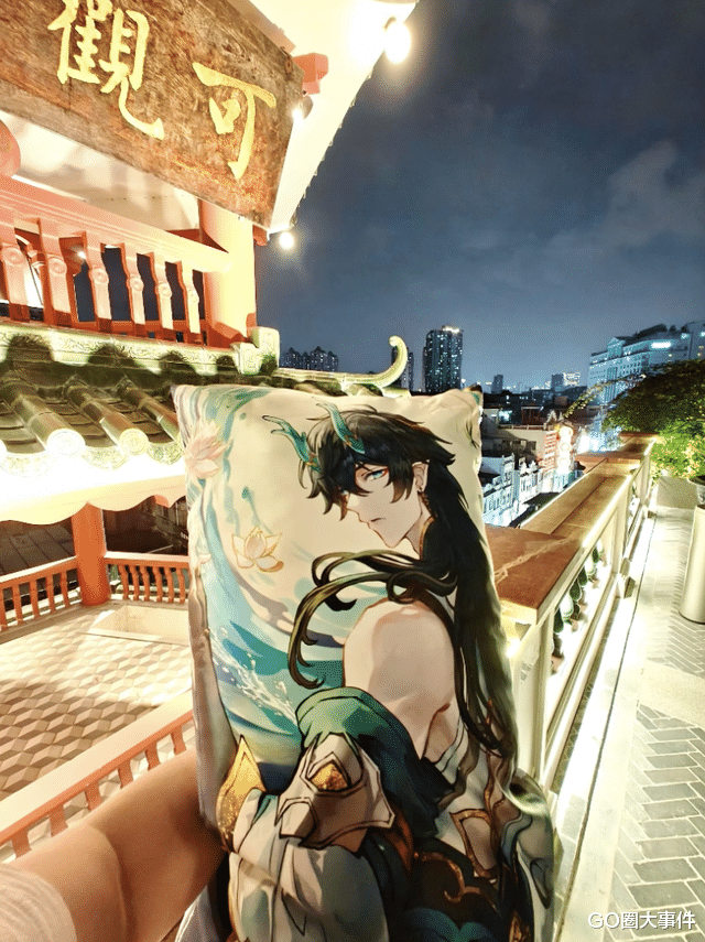 配文还称饮月君与中国风的建筑融入得非常好,感觉像饮月君打破了次元壁,来到三次元与她约会一样。啊这,虽然大家都有称二次元角色老公/老婆的习惯,但像这样带着角色抱枕在各个景点打卡,还是很少见的,看来小姐姐不仅是社牛,对饮月君也是妥妥的真爱啊。