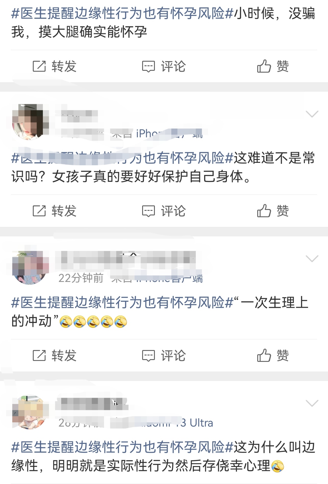 还有的网友说:“哎,所以性教育非常重要!校园就应该大力推进性教育,不要藏着掖着要大大方方的推广,本就是人类本能何必谈性色变”