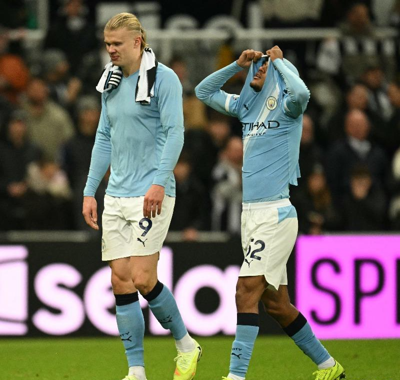 曼城在这场比赛中继续状态火爆的哈兰德担任前锋,不过纽卡斯尔联队主场声势浩大,上半场两队斗攻战况激烈。17分钟福登在禁区内射门,射门前被舍尔飞铲踢中,但主裁判不为所动。曼城也有门将多纳鲁马屡救险球,双方半场踢成0比0。