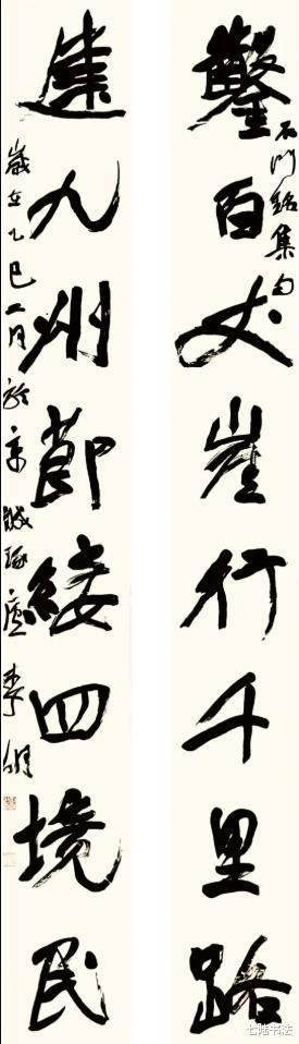其行草取法怀素的狂逸与米芾的跌宕,又从《石门铭》等北魏摩崖石刻中汲取开张闳肆、沉雄浑厚的气韵,通过线条的枯湿浓淡变化,营造出变幻莫测又悠然自适的艺术效果。
