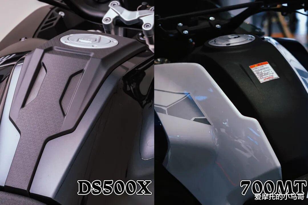 春风700MT配备的是一个20L的大油箱,而无极DS500X那18L的油箱看着其实也不错,虽然小了2L,但实际续航能力无极却比春风要远一些,这应该也是更强动力输出的附加代价吧。