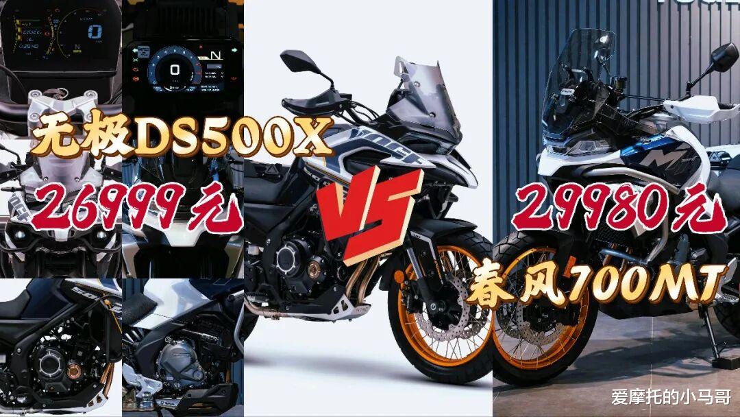 上周无极推出售价 26999 元的中排拉力 DS500X,这款打破市场定价逻辑的 “卷王”,走的是 “降本保效” 的产品路线。而这条路线并非无极独有,此前春风 700MT 也曾以此出圈 ——700 级拉力 ADV 定价仅 29980 元,一度震动市场,点燃了不少摩友对中大排拉力车型的期待。如今两款车型同台对比,该作何选择?无极是否能实现 “长江后浪推前浪” 的超越?
