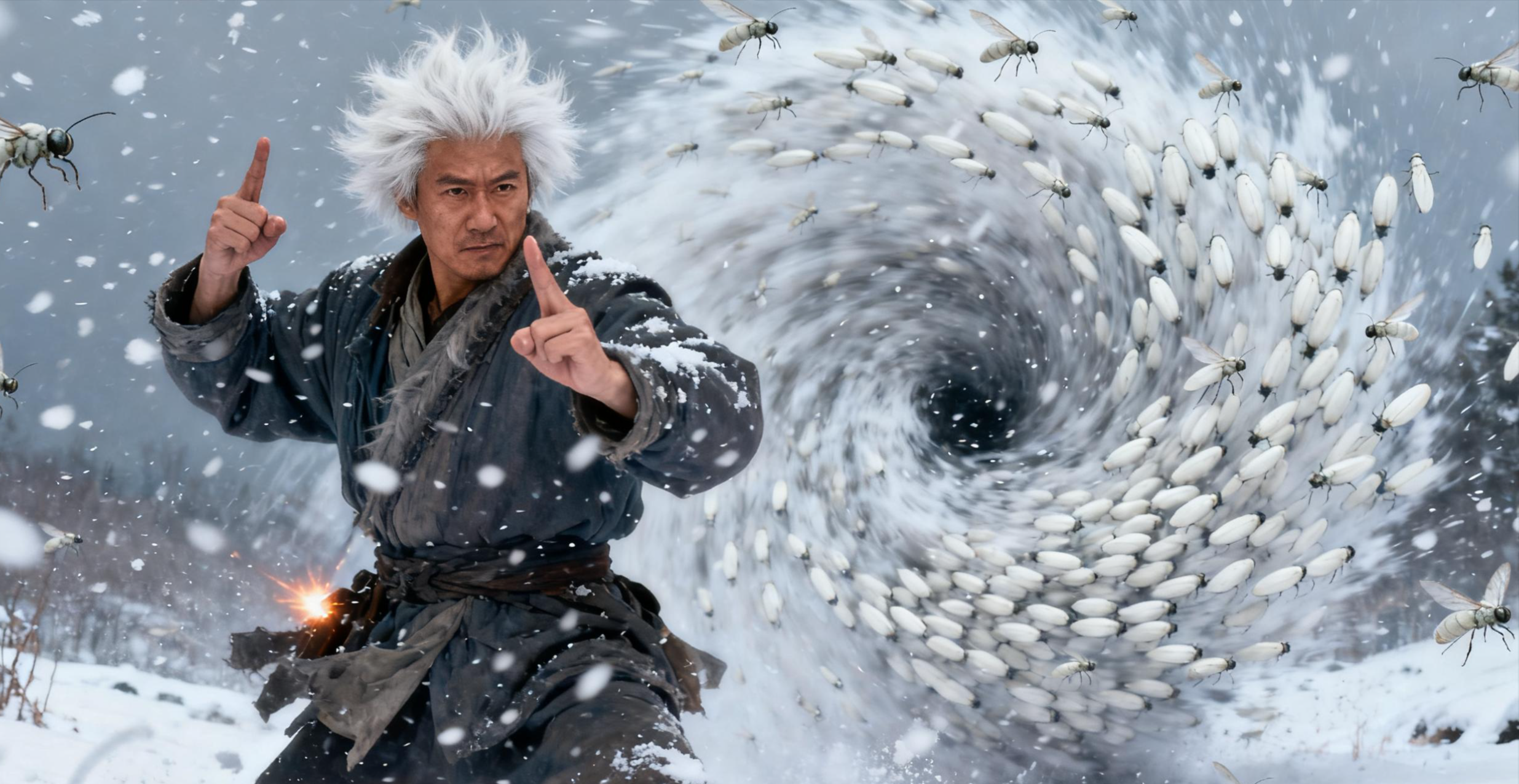 手电筒的光束里,赵怀生看到了毕生难忘的一幕:旋风中,有无数道白色的小影子在快速移动,它们像蝗虫一样密集,通体雪白,翅膀透明,振动时发出的高频嗡鸣,混杂在一起,竟形成了那令人毛骨悚然的 “笑声”!