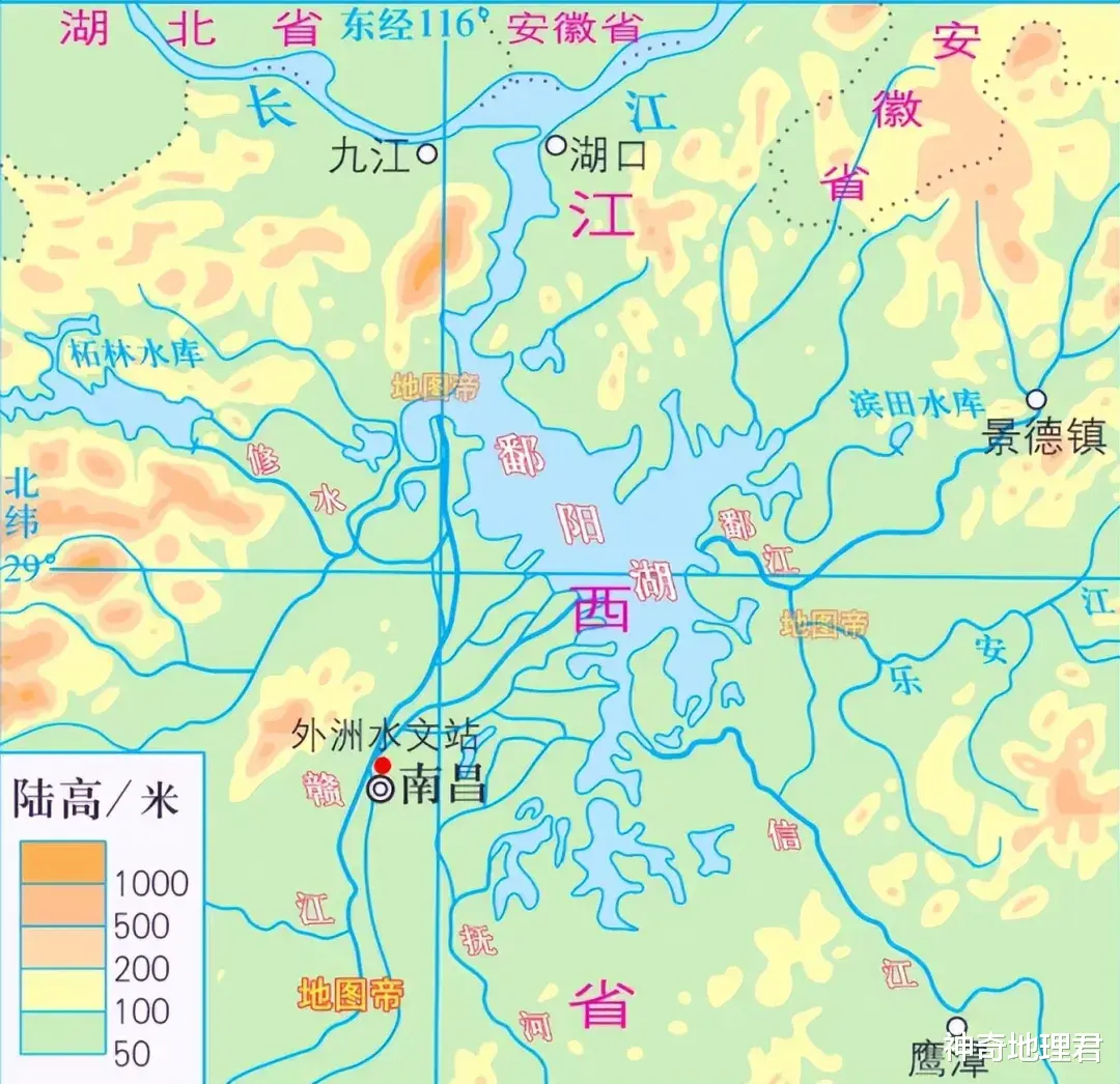 :搁江西省最北边,北边跟湖北、安徽隔长江对望,南边贴着鄱阳湖,正好夹在武汉、合肥、杭州、南昌、长沙这 5 个省会中间,妥妥的 “五省通衢”;海拔极值