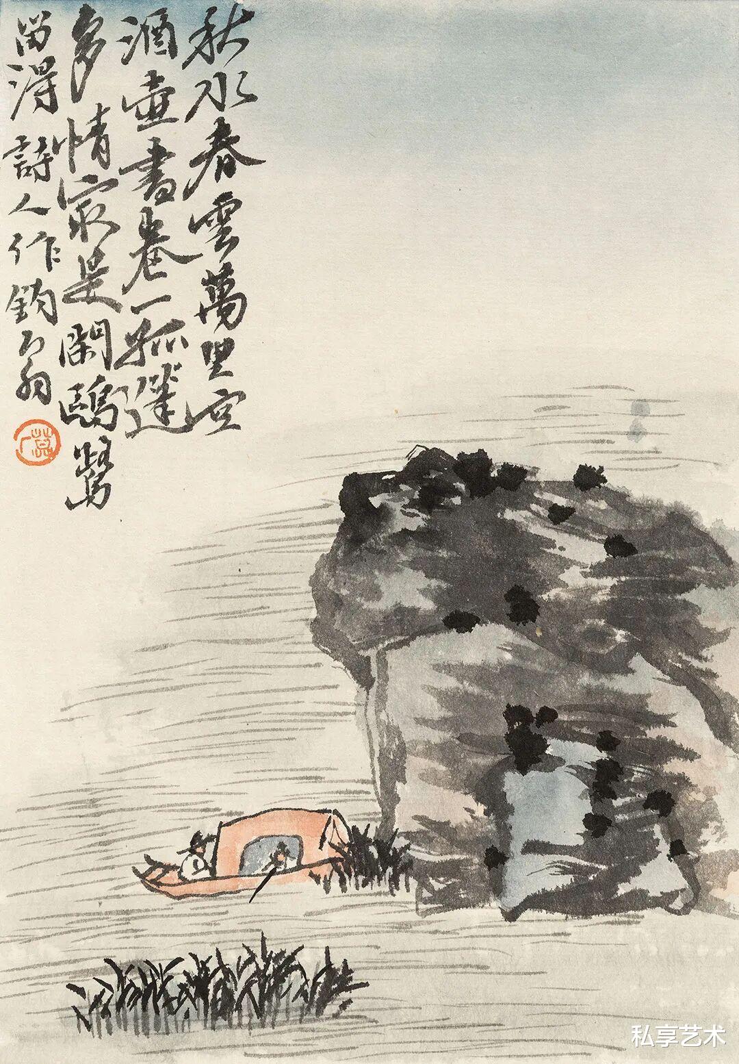 石涛像黄山谷、米虎儿一样,也爱“墨戏”,看他早年的《十六应真图》,分明实实在在的严谨、完备到了极致。可他题画又直言“哪得不游戏”,他的作品“打草稿”也是实实在在的———画是在船上画的,你尽可以想象当时的情形:水拍天、浪打船,浮沉摇曳,悠哉游哉,这是船的状态,也是作画的状态,最后成了画面的状态,凝固了彼时石涛的心灵与生命状态。