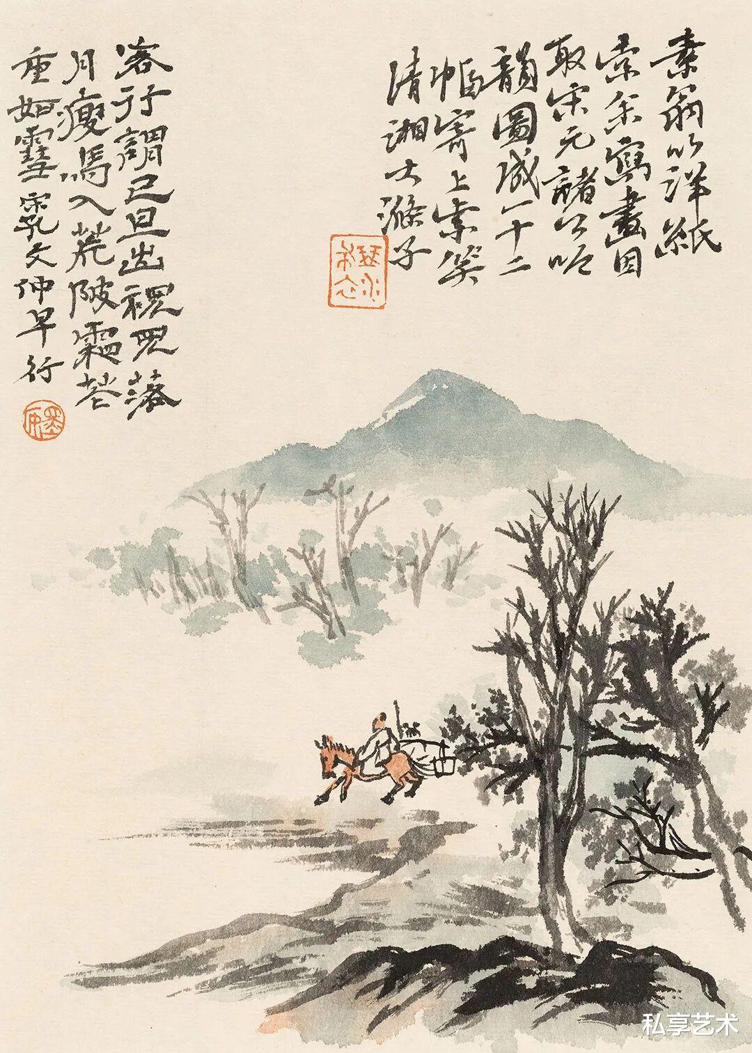 临了一套石涛的小册页,朋友看到说,你画这种小画的状态,像在打草稿似的,这一语点醒了我,石涛爱用“打草稿”这个词,《搜尽奇峰打草稿》便是他的代表作,他屡次在画上题写“打草稿”,他的《江行山水册》《少陵诗册》,还有《黄砚旅诗意册》中的几开,草稿的意味非常浓,不像是正经的 “作品”,可是分明又落款、盖章,这位大画家,难道在糊弄我们?