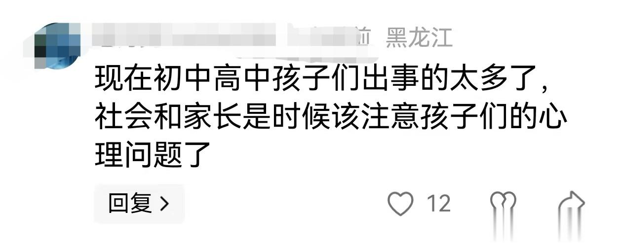 另有网友提醒,现在的孩子心里承受能力比较弱,社会和家长平时多注意孩子的心理健康,发现问题及时沟通开导。
