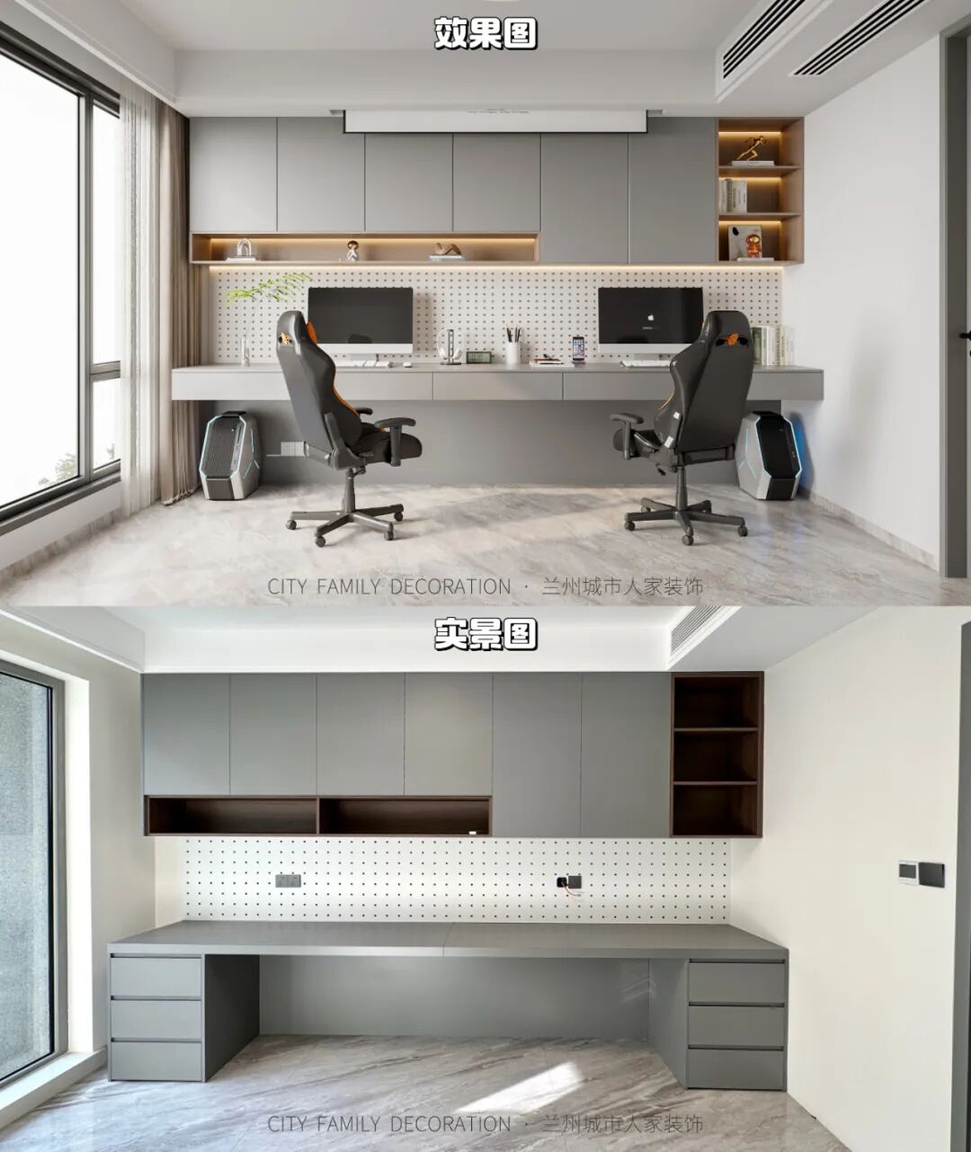 总结两个超实用的现代简约装修小建议:1、用暖材质破冷调:冷灰为主的同时,加木饰面、柔色软装,平衡轻奢的距离感;2、功能要“专属化”:电竞房、儿童房按家人需求做细节,让大空间装得下每个人的热爱”。做这套220㎡的设计时,我没把意式轻奢定义成“冰冷的样板间”,而是“装得下全家热爱的容器”。最满意的是儿童房的柔黄撞色——让轻奢不再是成年人的专属,也能弯下腰接住小朋友的童趣。希望业主在这空间里,既能靠在客厅享受大平层的高级,也能蹲在电竞房和兄弟开黑,或是看着小朋友在儿童房摆弄玩具,把日子过成冷与暖刚好的样子