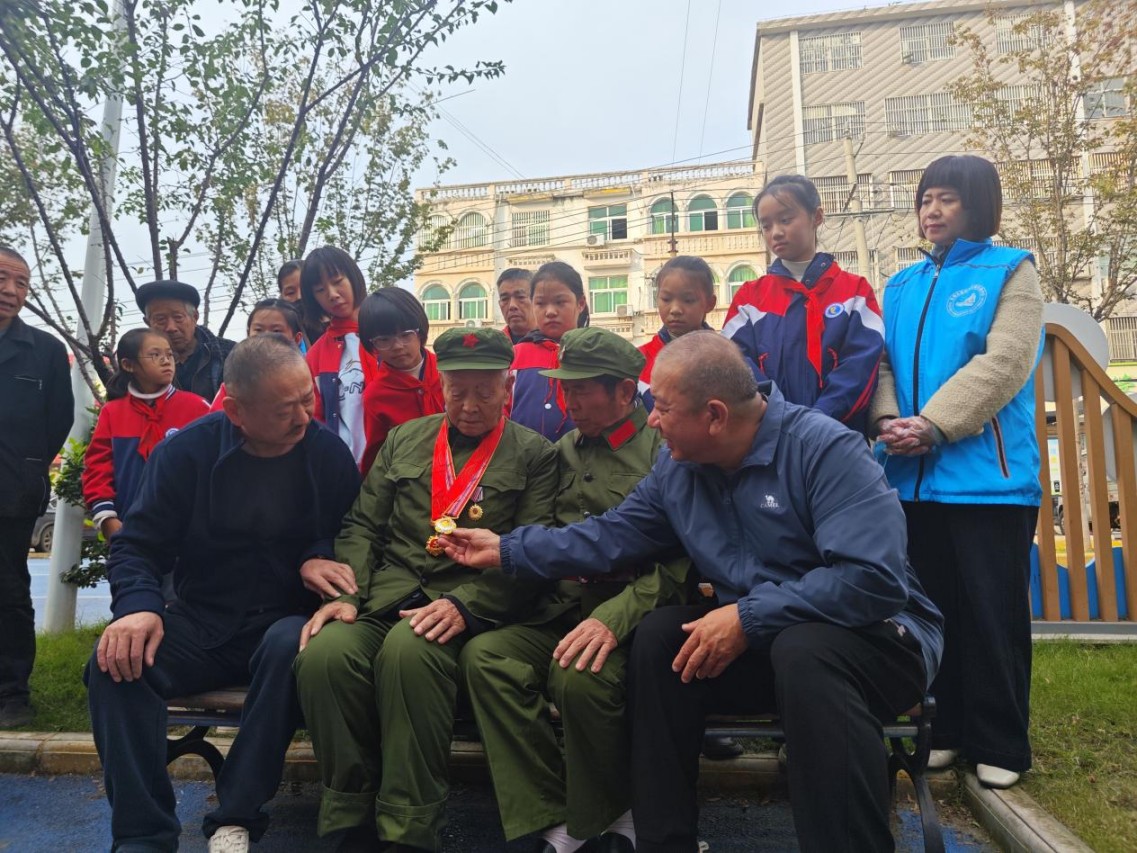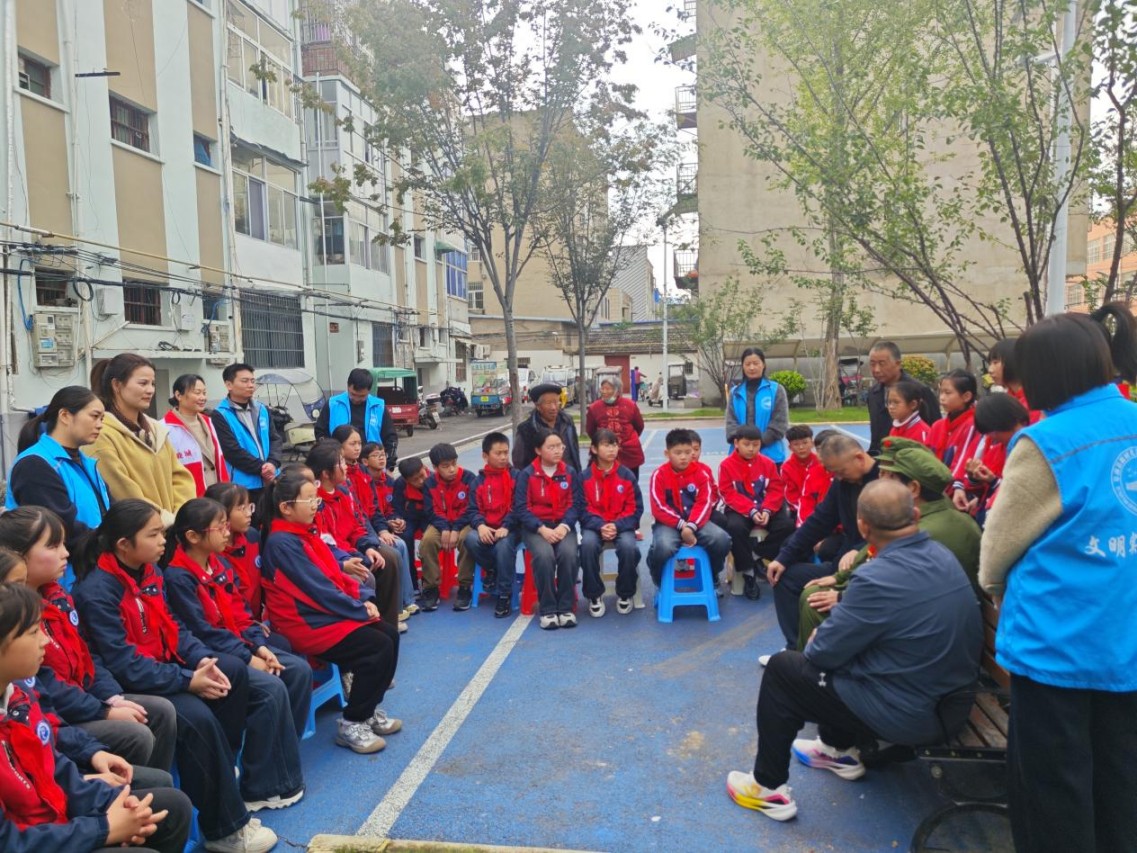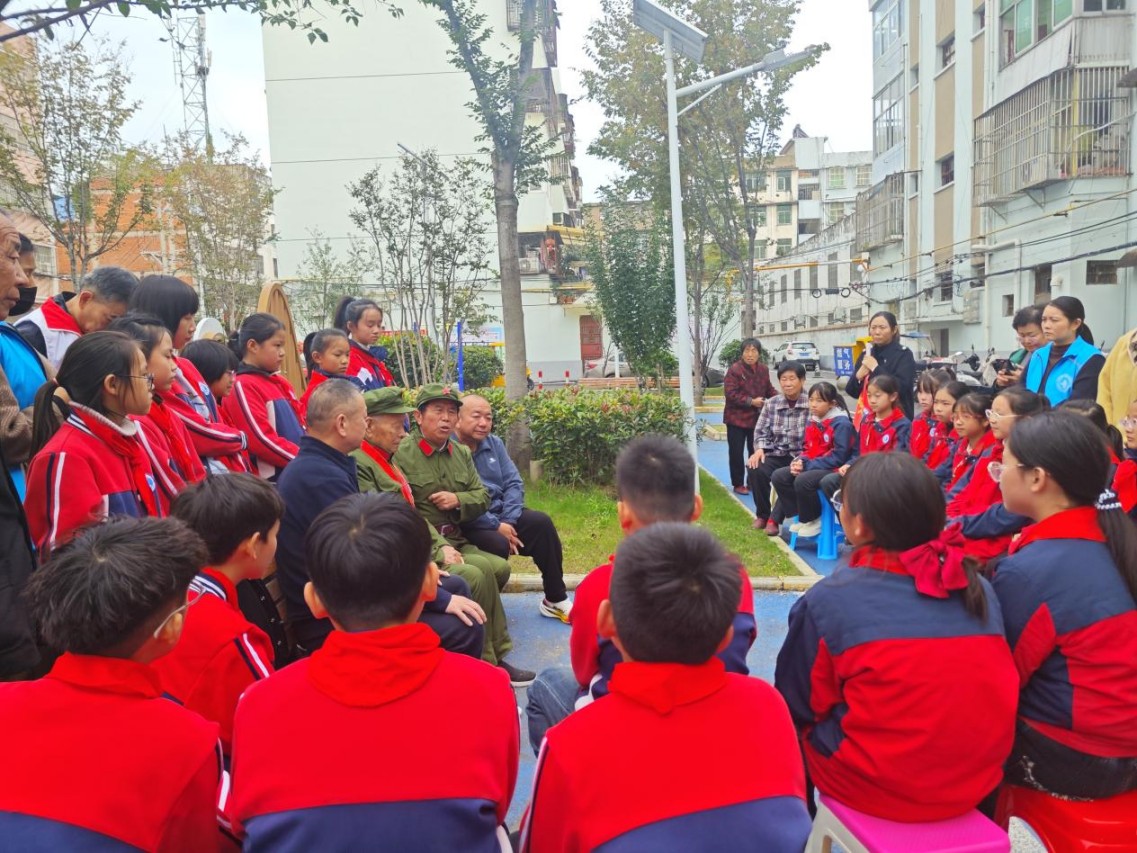在中国人民志愿军抗美援朝出国作战 75 周年纪念日来临之际,阜南县鹿城镇红旗社区新时代文明实践站于 10 月 24 日在一职高口袋公园开展红色教育活动,邀请抗美援朝老兵陶广忠为青少年讲述抗美援朝的烽火故事。
