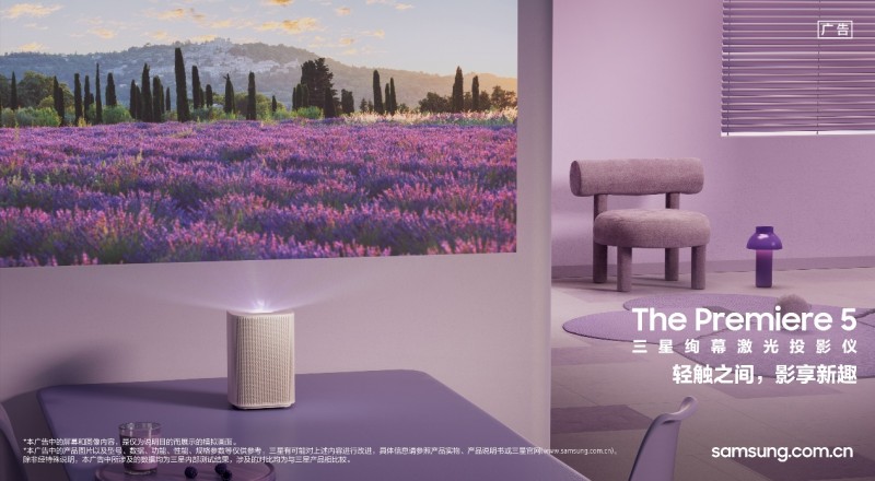 近日,三星全新推出首款搭载三色激光与触控交互功能的绚幕激光投影仪Premiere 5,为用户带来一机多用的智能娱乐新体验。在娱乐方式愈发多元的当下,智能投影仪正从单一设备向跨场景智能交互终端加速进化。三星绚幕激光投影仪Premiere 5不仅通过超短焦投射比实现极短距离投射100英寸画面的突破,更首次将红外摄像头与激光技术深度融合,支持用户直接以指尖操控投影画面,既带来影院级超大屏沉浸观影效果,又在家庭娱乐、商务会议、教育互动等多元场景中打造沉浸式交互体验;配合三星新Tizen智能系统,Premiere 5以更智能、便捷的操作体验,开启指尖操控视界的全新时代。