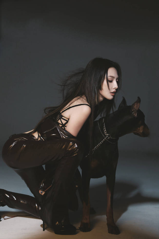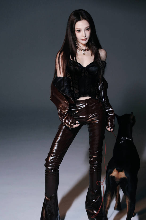 彭小苒与杜宾犬同框,画面张力直接拉满。