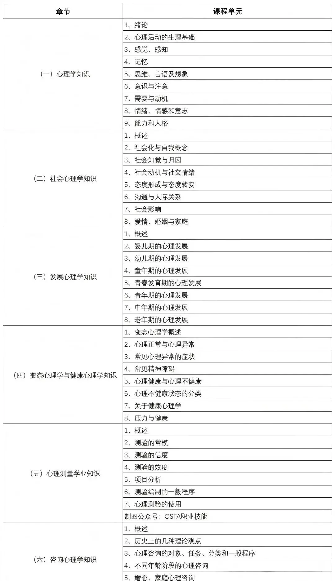 理论知识:基础心理学、发展心理学、社会心理学、人格心理学、变态心理学、咨询心理学