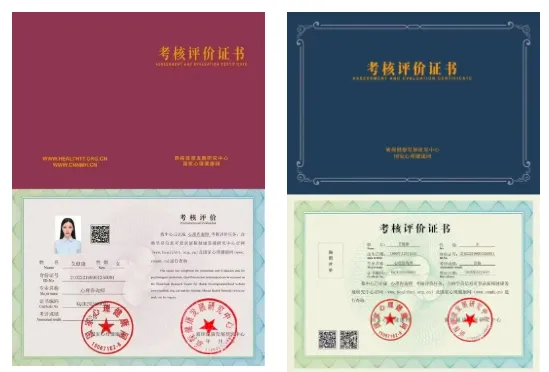 学员完成培训并考核合格后,将获得由新探健康发展研究中心与国家心理健康网共同颁发的“心理咨询师考核评价证书”(双章)。该证书不设级别,分为大、小两种版本,且无有效期限制。