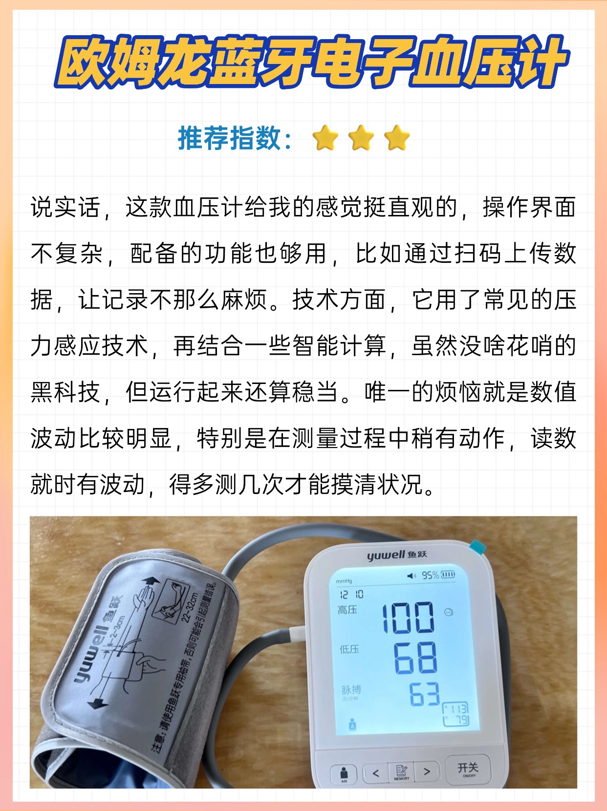 经常有人问电子血压计工作原理是什么?为啥有的误差会特别大?其实电子血压计原理不复杂,就是靠袖带充气阻断血流,再慢慢放气,通过传感器抓动脉搏动的振动信号,最后转换成数字显示出来。但误差大真不是原理的问题,多半是细节没做好!比如袖带尺寸不对,太松太紧都会不准,肥胖的人得用大号袖带,小孩有专用的,通用款不是人人合适。还有操作姿势,手臂没跟心脏齐平,测的时候说话动来动去,数据肯定飘。另外用久了不校准也会出问题,一般一年就得校准一次,好多人用到坏都没校准过,能准才怪。别光看品牌排名,这些细节才是关键。接下来分享自己选购血压计时的一些经验,记得来看。