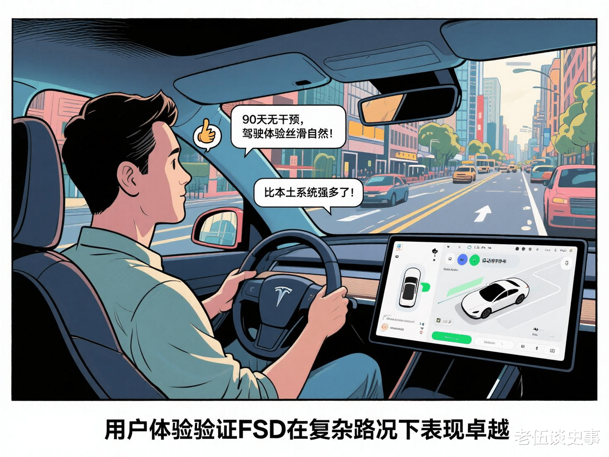 2025年,一位美国车主分享了他连续90天使用FSD的体验:在30多英里的通勤路程中,几乎无需人工干预,自动驾驶表现“令人震惊”。