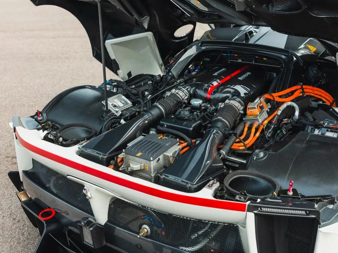与LaFerrari一样,FXX K由一套源自F1技术的Hy-Kers混合动力系统驱动,其核心是Tipo F140 V-12发动机的加强版本——F140 FF,排量增至6.3升。这台发动机升级了采用机械挺杆(而非液压挺杆)的新凸轮轴、经过特殊抛光的进气歧管以及不带消声器的新排气系统,使其功率提升至848马力。