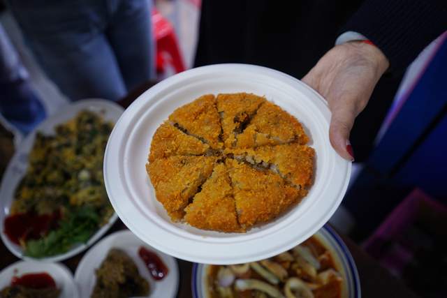 还有两道菜是老板的儿子带来的,芋泥香酥鸭,酥香的鸭肉裹了一层酥炸的芋泥,酥、脆、嫩、香都齐了。手撕鸡,拆解的鸡肉拌上酱料,用手抓着吃,就是很好的看剧下酒菜。