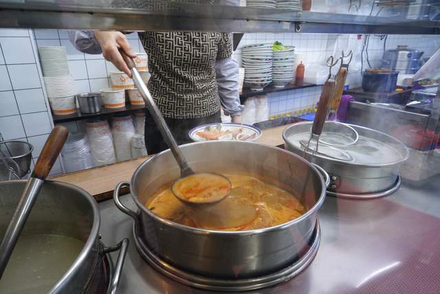 沙茶面,慢火熬煮出来的汤底,微辛浓稠爽口,他们家的汤头似乎有一种魔力。小料随个人喜好,经典的不说,我尝过沙虫、肉筋都是口感非常好,还能吸收汤汁的,也引得其他沙茶面模仿。面条可以选择默认的水面,也可以选择泡面或者粉。这碗沙茶面很对我的胃口。