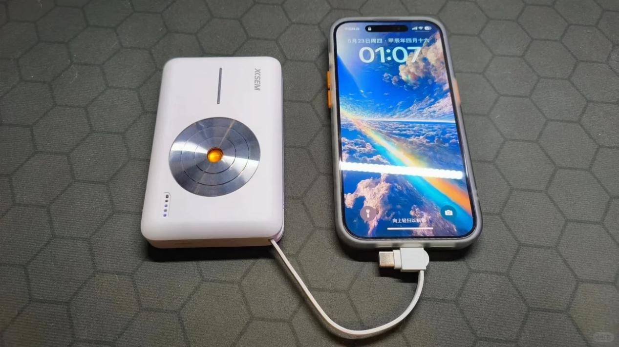 不过,它的磁吸充电功率偏低,实测边玩游戏边磁吸充电,电量上升速度较慢,甚至有“边充边掉”的情况。有线快充表现则明显更好,输出稳定,也更适合高功率场景。机身设计考虑了手感和握持体验,和手机贴合度高,不影响操作。整体来说,这是一款设计感强、游戏体验友好的充电宝,但不太适合追求纯磁吸快充效率的人。