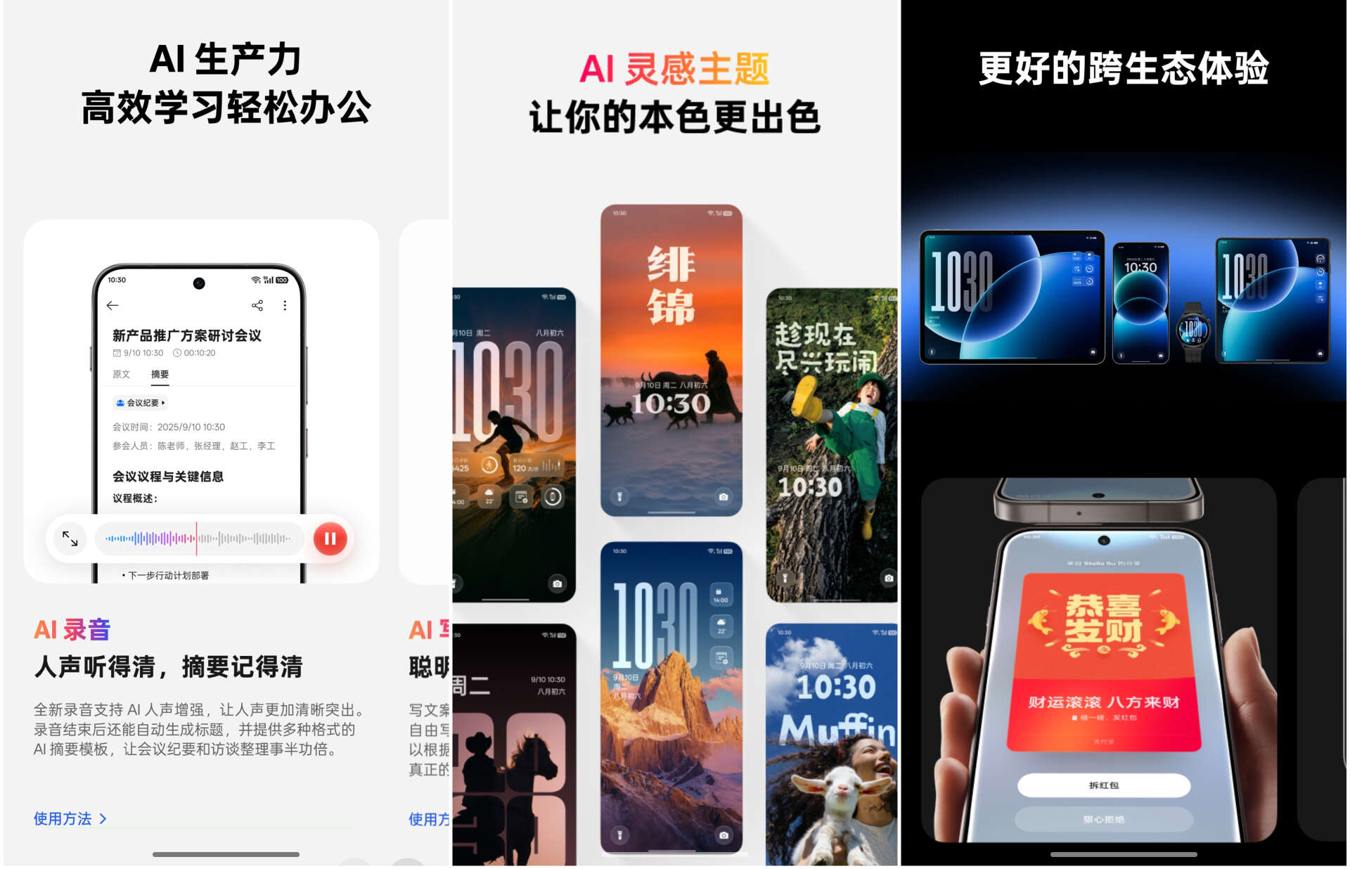 AI一键闪记能提取长图文、解析长视频生成章节摘要,还能记券码、自动记账,实用又高效。有记忆的小布打通全系统,能搜索问答、精准推荐,越用越懂你。AI影像让静态照片变动态壁纸,人像补光更自然。