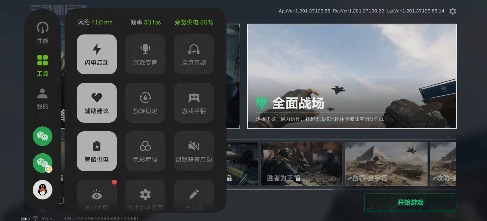 游戏助手的另一个进入模式就是在游戏启动后,随时可以左侧边栏滑动标识打开,一样可以进行多种设置比如性能模式、帧率等等,效果是一样的。
