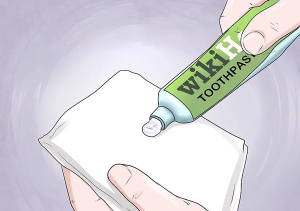 3、将牙膏挤在布上。根据划痕的大小挤压适当的牙膏到布上,不够时可以添加。