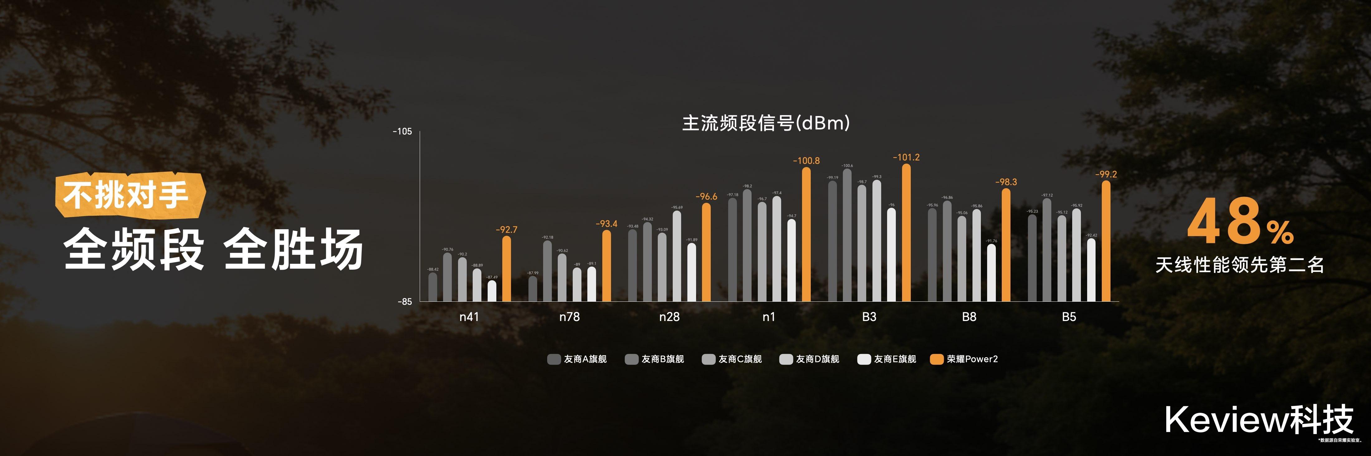 荣耀Power2搭载旗舰同款鸿燕六翼天线,并搭配荣耀自研射频增强芯片C1+,支持25根天线,100%的中框天线占比,多通道上下行覆盖能力均达到行业第一。同时,荣耀Power2不计成本行业首创了主流旗舰都未配备的平行双轨天线设计,打造了行业最强的低频超级四天线,弱网信号表现提升200%,通信表现超越行业主流旗舰机。凭借各项通信硬实力,荣耀Power2在电梯、地铁、高铁等弱信号及各类户外场景中,均能实现流畅通信不中断。其更以整机通过国家无线电监测中心检测中心(SRTC)电梯强信号与精准导航双场景五星认证的权威背书,实力印证“电梯信号王”称号。