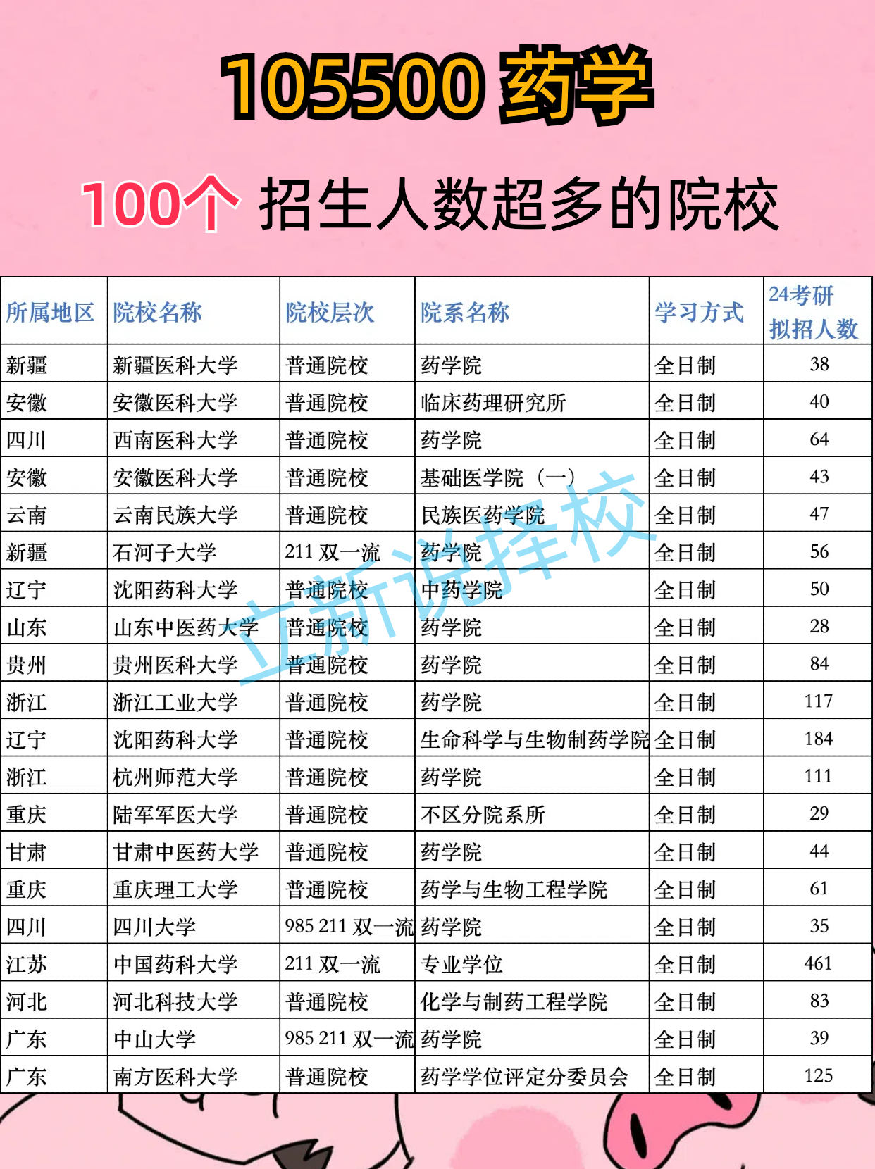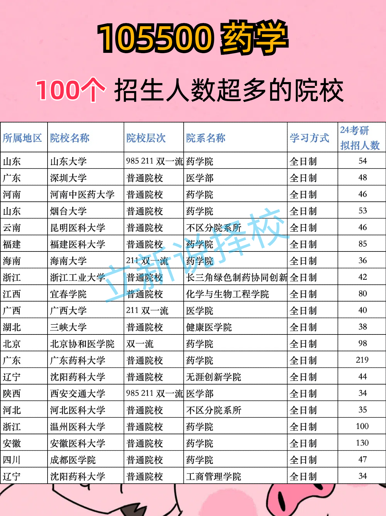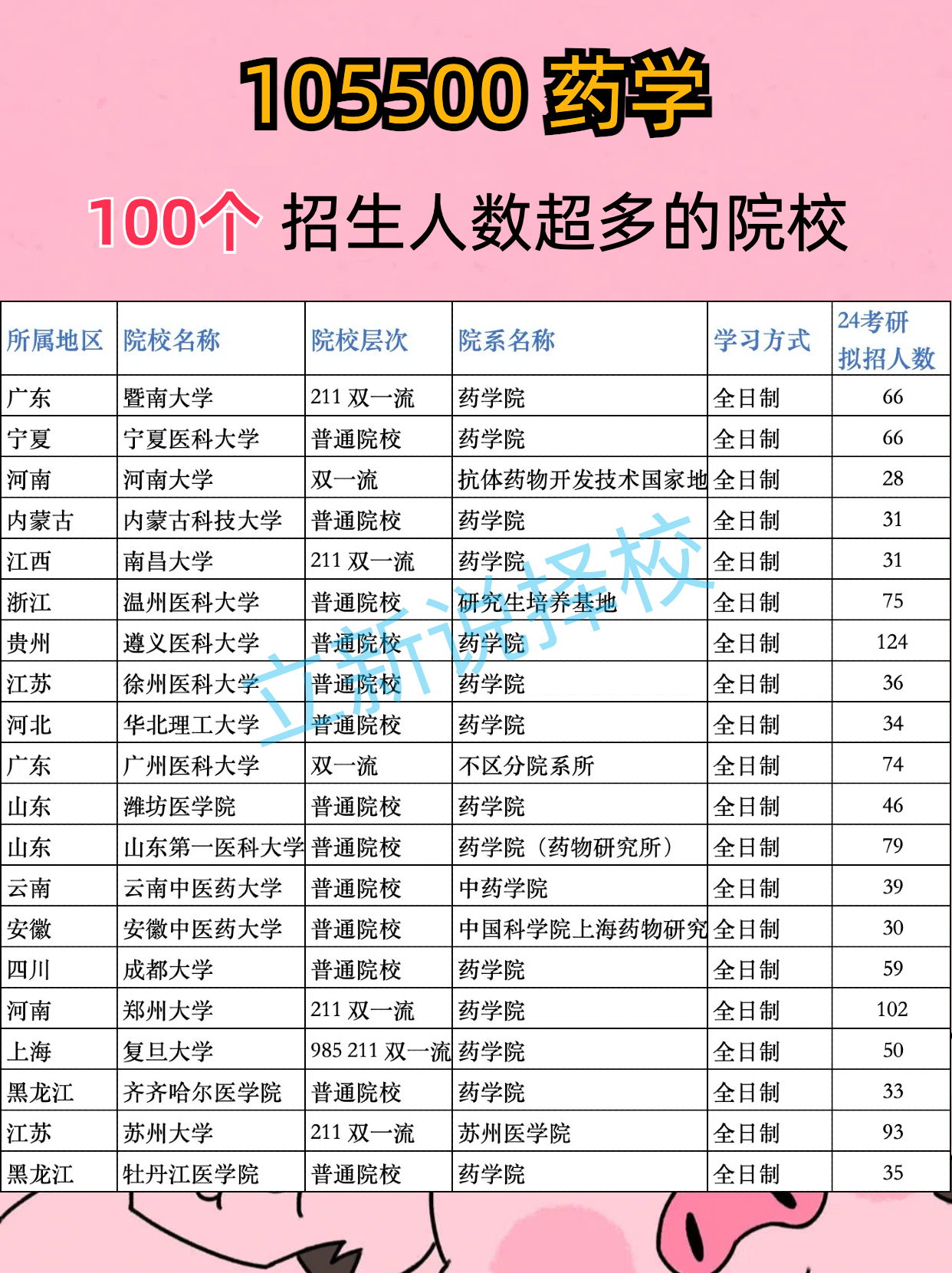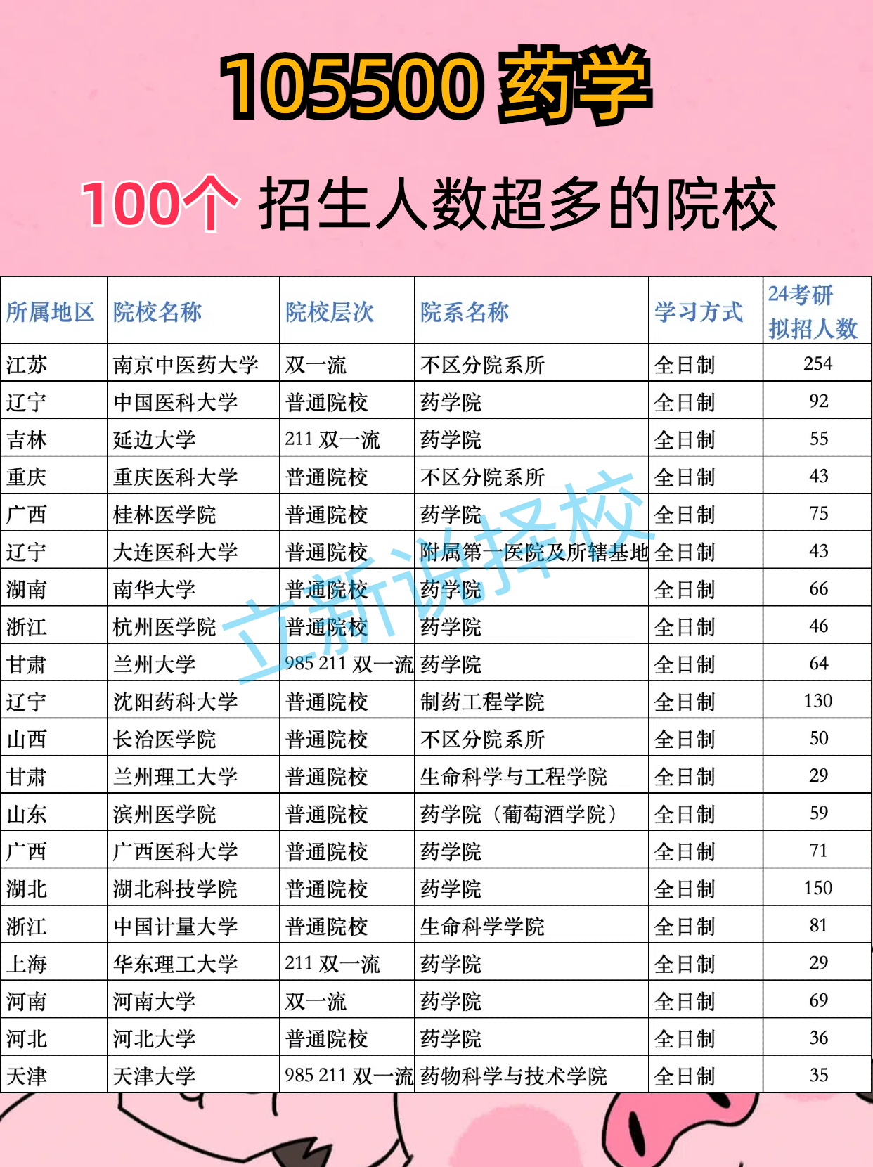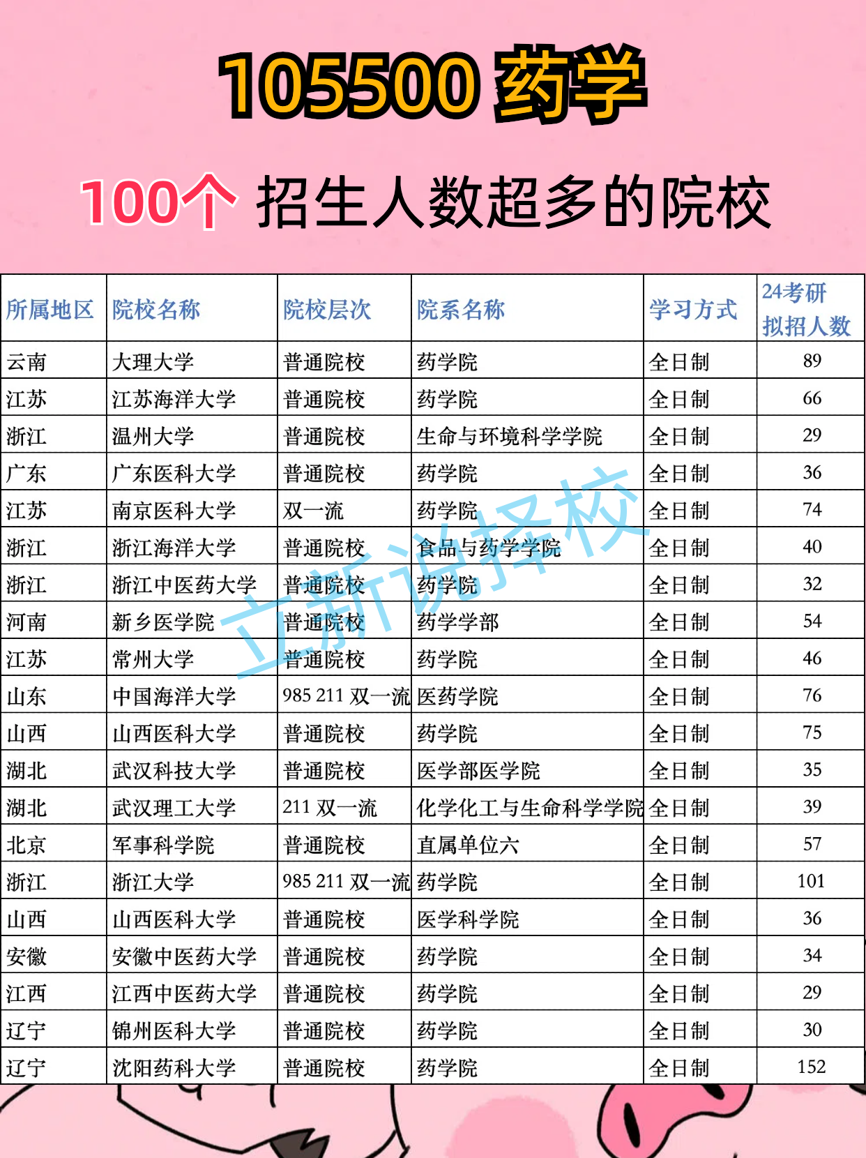 这里更新的是【2024考研】中,【105500药学】招生人数超多的院校,包括: