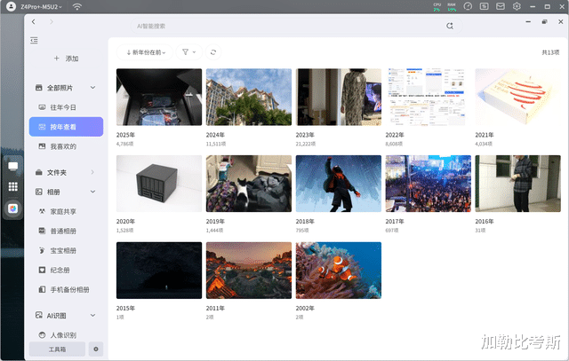 极空间Z2Pro搭载的瑞芯微RK3568处理器,放在2盘位NAS上,1个2.5G网口,存储、影音、照片、远程性能足够,极空间自带的功能都能做的很好(AI不行)。