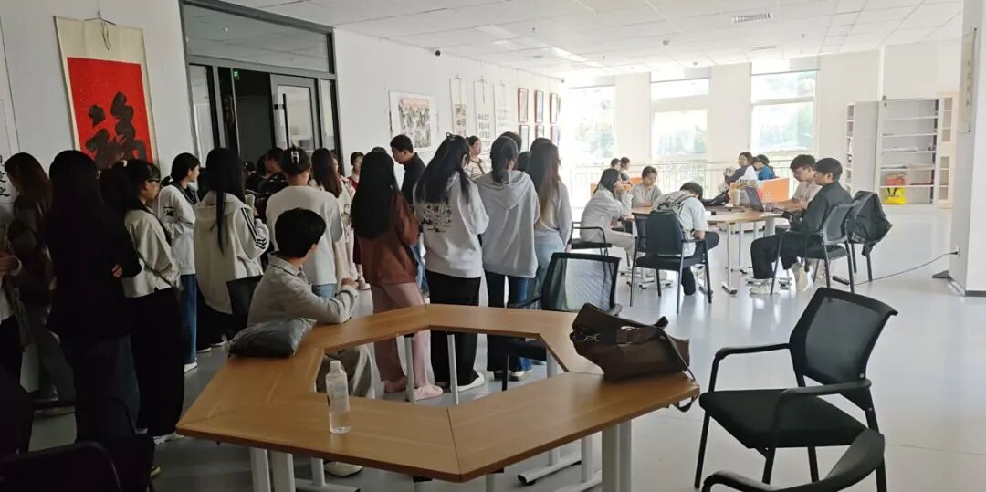 纳新现场,同学们或驻足展板观摩社团过往创作成果,或在接引人员引导下有序咨询;咨询区排着长队,工作人员耐心解答疑问,不少同学携带文学作品片段交流创作想法。新同学的持续加入,展现出大家对文学社团的热切向往,成为本次纳新中最动人的风景。