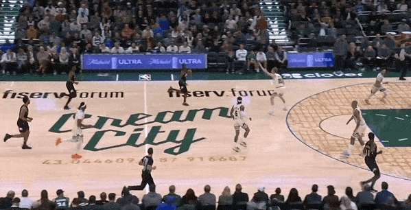 雄鹿联防,马克西三分线外两步接球拔起就射,完全不讲理。