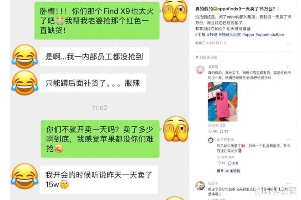 继前代OPPO Find X8系列的成功之后,今年的OPPO Find X9系列又卖爆了!小红书平台上有人透露,Find X9系列开售首日销量便突破15万台,势头强劲。其中,极具辨识度的“追光红”配色尤为抢手,正如OPPO高管周意保此前所透露,该版本自发布起就备受关注,上市后迅速在全国范围内出现大面积缺货。