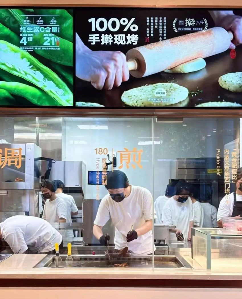 首先,为了打造差异化,太极堡坚持肉饼手工现做、现煎,面饼现擀现烤,这一决策直接推高了人工成本。