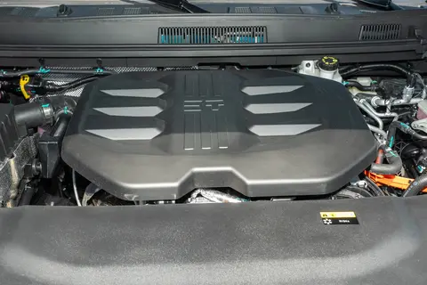 实际驾驶中,起步阶段电机瞬时扭矩输出轻快,城市道路超车时,深踩油门可感受到连贯的动力响应,无明显迟滞;切换至运动模式后,发动机与电机协同发力,推背感显著,时速100km/h以上再加速时,动力储备充足,超车时更有信心。底盘方面,车辆采用非承载式车身,配合四驱系统与多片离合器式差速器,在试驾路线的碎石路段行驶时,无明显打滑情况。销售顾问介绍:“这套四驱系统能根据车轮附着力实时分配动力,遇到单轮离地时,可快速将动力转移至有附着力的车轮,帮助车辆脱困。”笔者尝试通过模拟交叉轴的颠簸路面,车身姿态稳定,底盘滤震效果较好,车内乘员无强烈颠簸感。