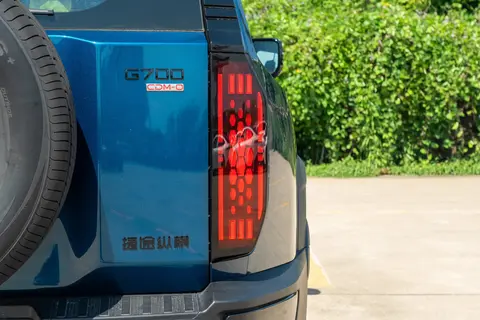 在固有认知中,硬派越野车型的空气动力学设计常被忽视,但G700探野版5座的外观细节却有所突破。销售顾问指出,车辆前脸采用分层式进气格栅,不仅保障发动机散热,还能引导气流有序通过,降低行驶风阻;车身侧面的边棱与圆角经过优化,车顶线条从B柱后缓慢下沉,配合车尾小型扰流板,可减少高速行驶时的空气阻力。