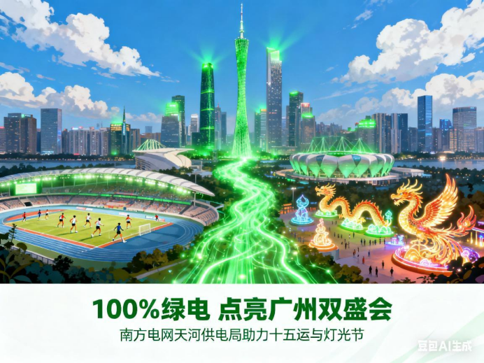在这场体育精神与光影艺术的双重盛宴背后,一张坚强、智慧且绿色的电网正以前所未有的方式提供着核心支撑。南方电网广东广州天河供电局(下称“广州天河供电局”)主动担当,创新实践,首次为广州国际灯光节实现了100%的绿色电力供应,并为十五运会提供了世界级的电力保障,确保了这场“双倍精彩”的完美呈现。