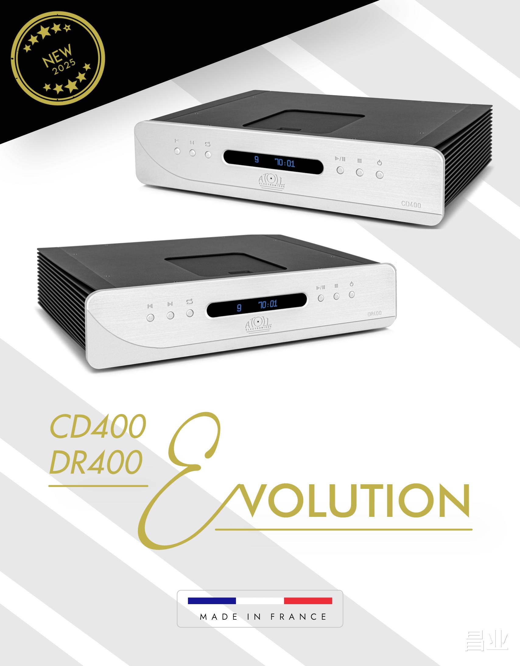 (7,900美元)CD播放器取代原CD400型号,同样配备ATOLL升级版顶置机械结构。该机型搭载精准匹配的高性能电源系统与音频电路,共同营造出沉浸式立体声场与震撼的真实听感。其他亮点包括:真双单声道架构、无反馈双极A类音频电路、双Burr Brown PCM 1792数模转换器(每声道独立配置)。CD400 EVO同时配备XLR模拟输出与AES/EBU数字输出,凭借其数字输入接口(同轴、光纤及USB)均可调用内部转换模块,本机亦可作为高端数模转换器使用。