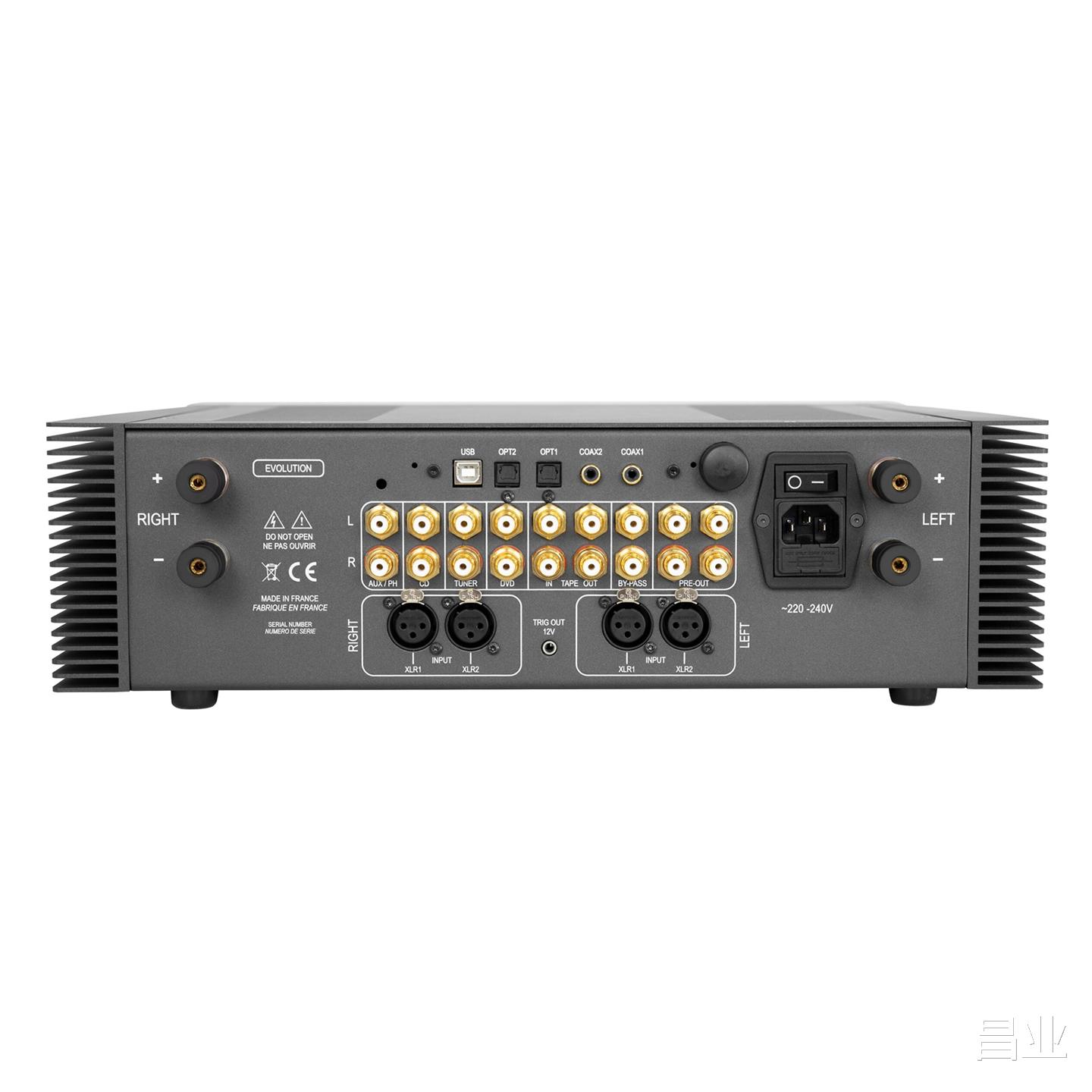 (7,000美元)是为优化音乐性而打造的精密合并功放。它将400 EVO系列分体机型的技术升级融于优雅单体机身,采用真双单声道设计,每声道输出功率160瓦(8欧姆)/300瓦(4欧姆)。连接接口包括两组XLR线路输入、五组RCA线路输入、家庭影院直通、双前置输出及12V触发器输出。