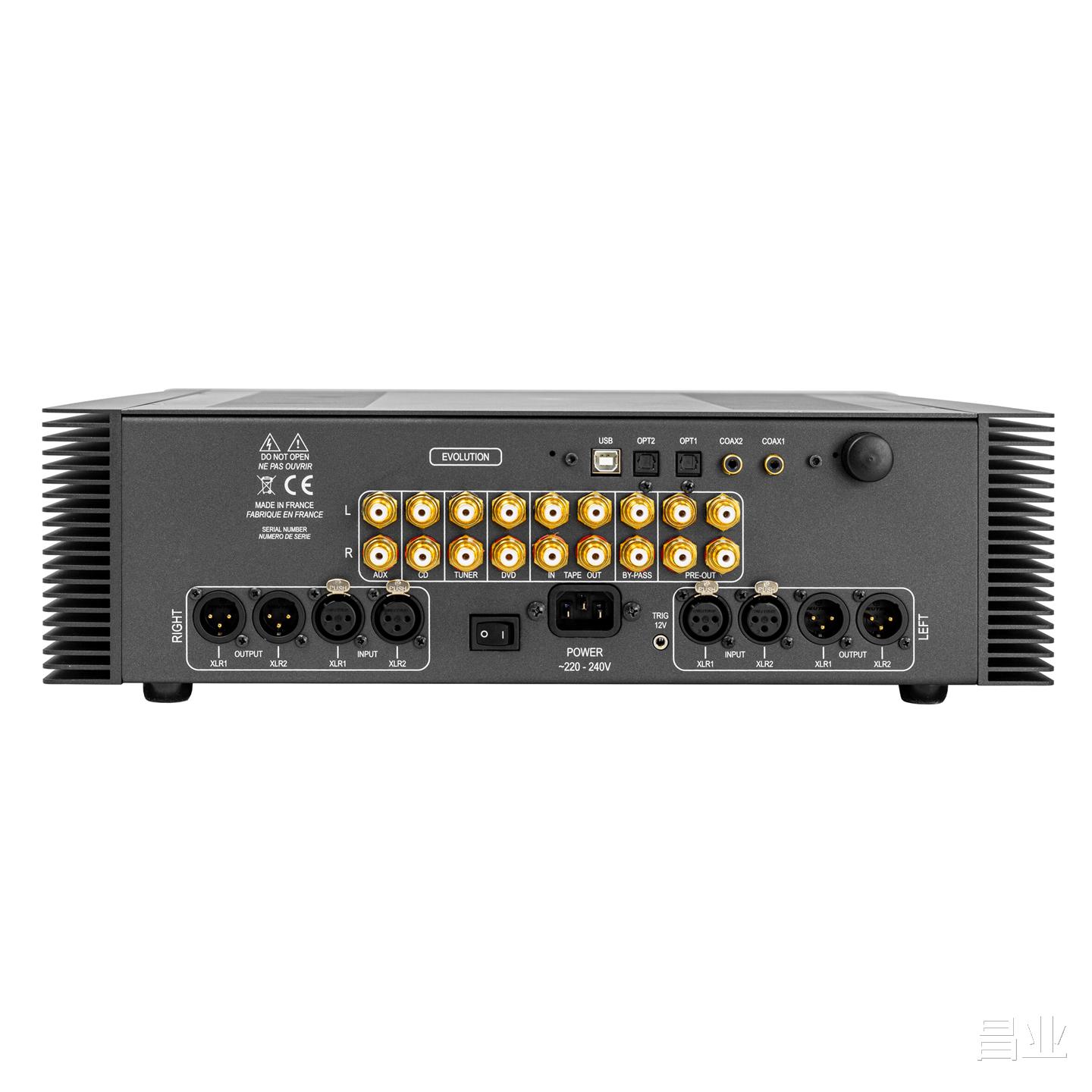 ●10毫米厚拉丝微喷阳极氧化铝制前面板,配高精度雕刻纹路●2毫米钢板结构机身●数控铣削铝制散热器●1050 VA环形变压器●高品质屏蔽型MKP耦合电容●定制镀镍/金工艺印刷电路板●纯平衡XLR信号处理架构●双极晶体管与LED恒流源确保电压稳定度●重新设计音频电路使设备对容性负载不敏感●提升的信噪比表现●高品质RCA输入/输出接口(机身螺丝固定)●碲铜材质扬声器接线端子●12V触发器输入接口