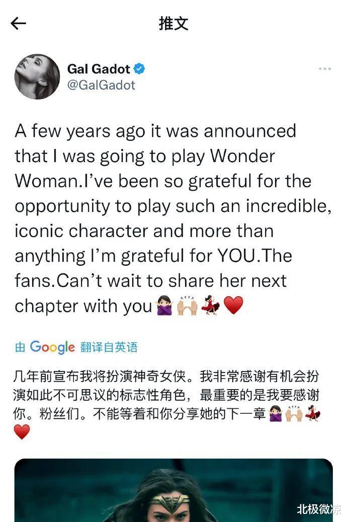 但是昨天盖尔·加朵还发推感谢粉丝,表示自己能被允许扮演超级女英雄,都是粉丝支持的功劳,并表示迫不及待想与粉丝分享她的下一章。