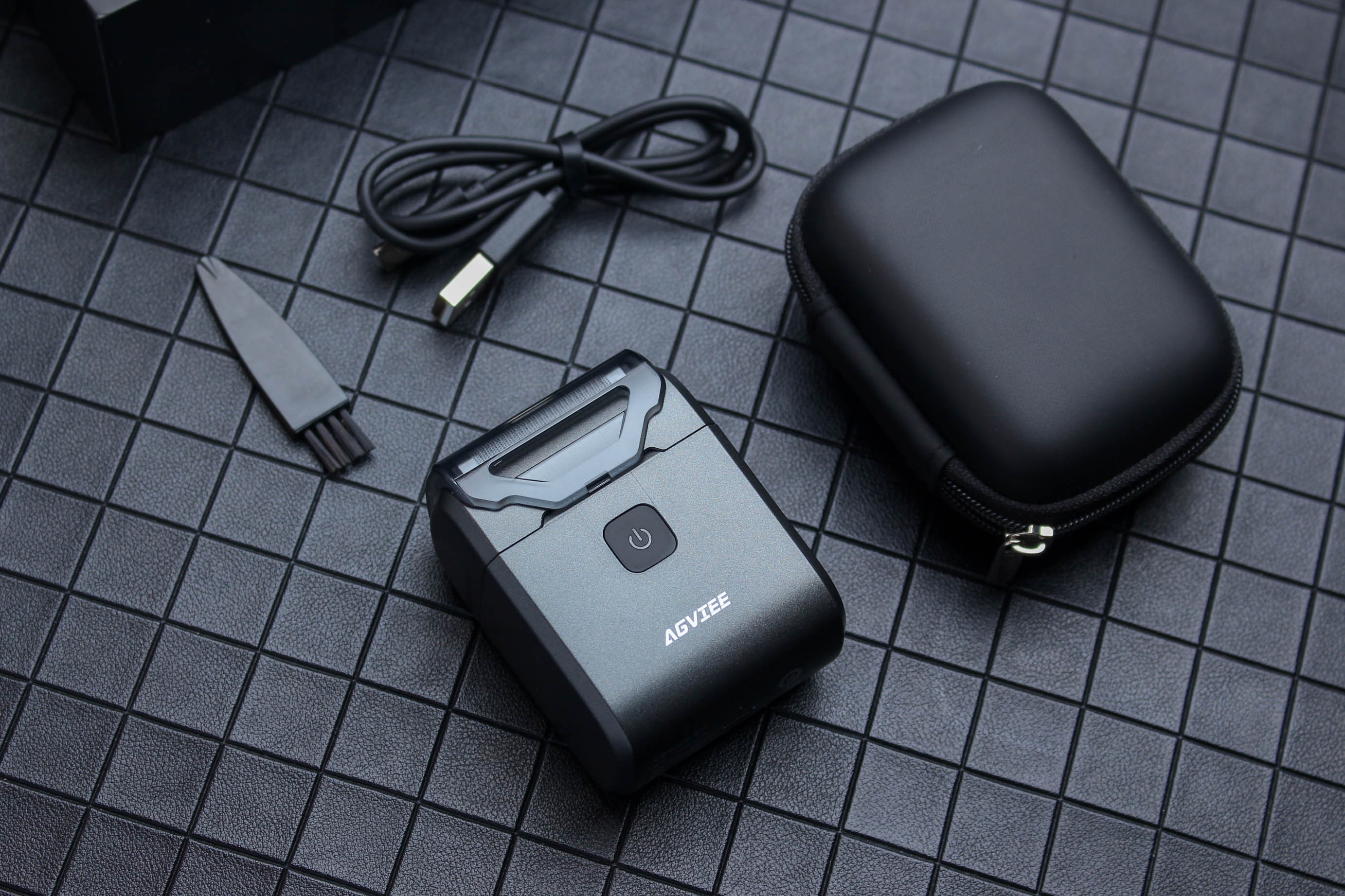 这款迷你剃须刀除了本体之外,还包括数据线、小毛刷以及一个收纳包组成。