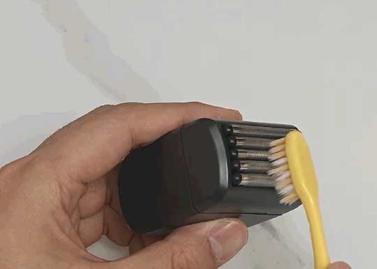 为了测试剃须刀的剃须能力,我找了孩子用过的牙刷来进行测试,为了对比效果,测试的过程只是将牙刷的前面部分进行,测试过程能够明显的感受到剃须刀的强劲实力,即便是牙刷毛这样的较硬材质也能利落处理。