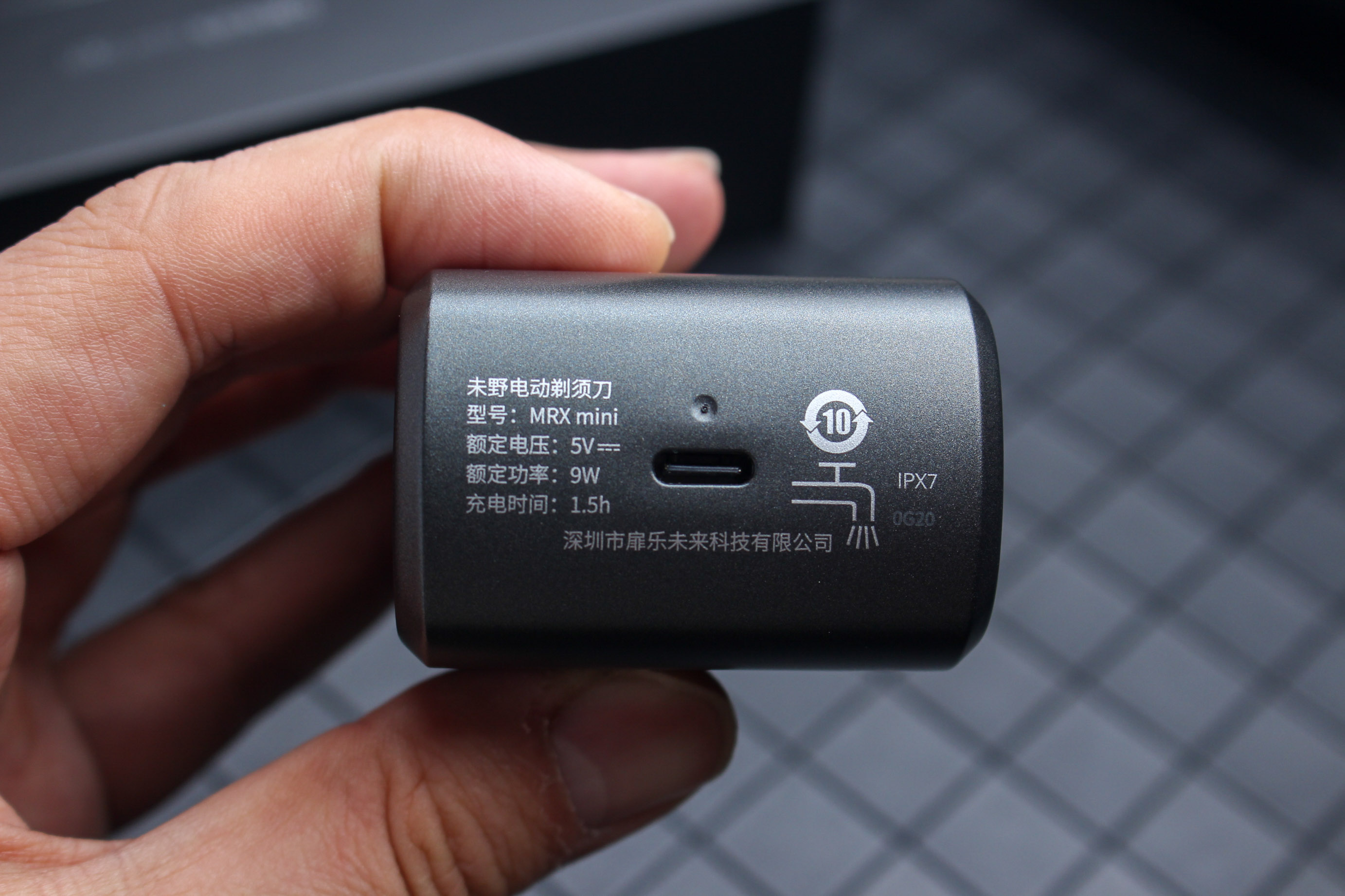 未野HRX mini有多小巧呢,它甚至连成年人手掌的一半都不到,感觉也就是手掌四分之一的样子,我觉得这应该是一个迷你剃须刀尺寸的极限了。
