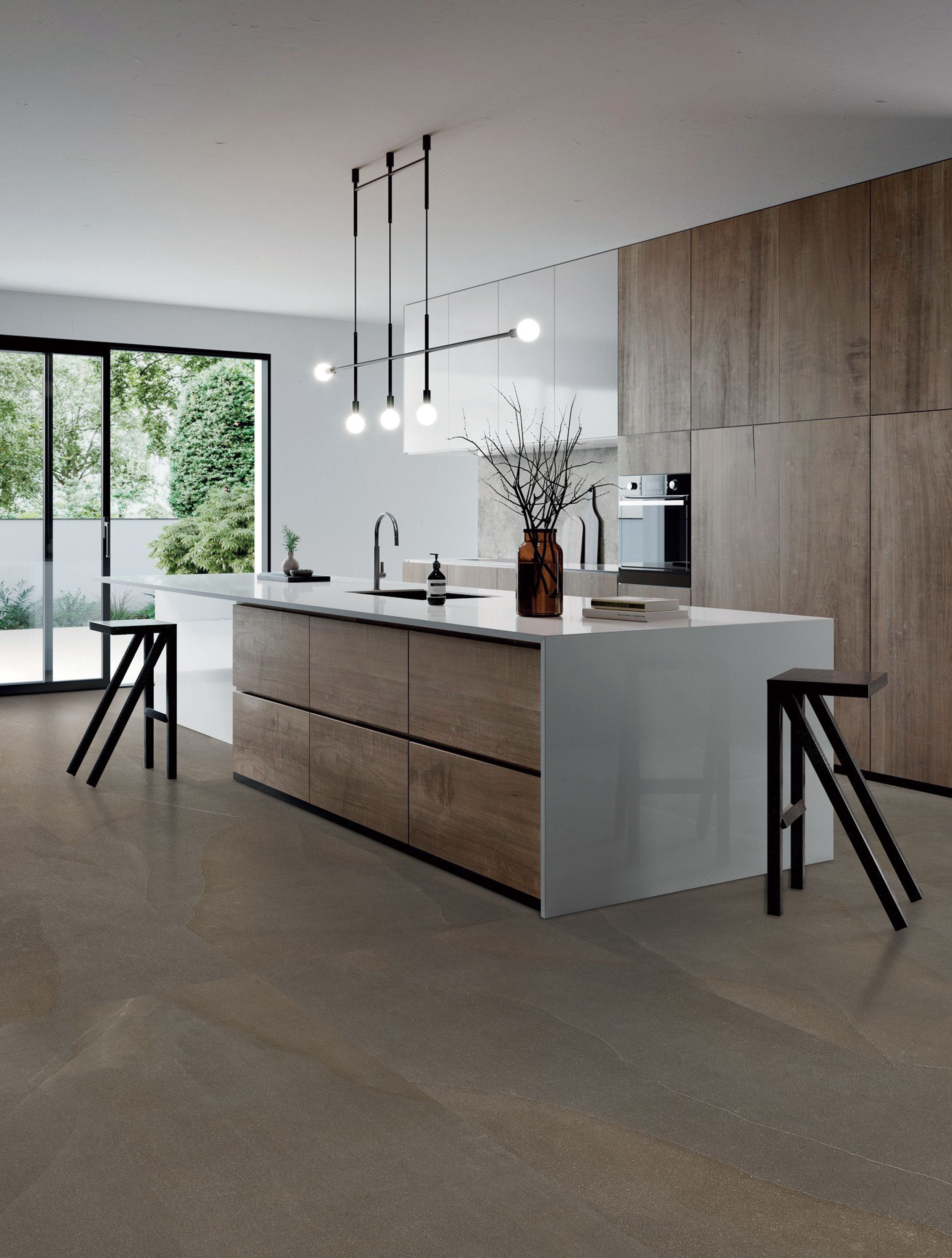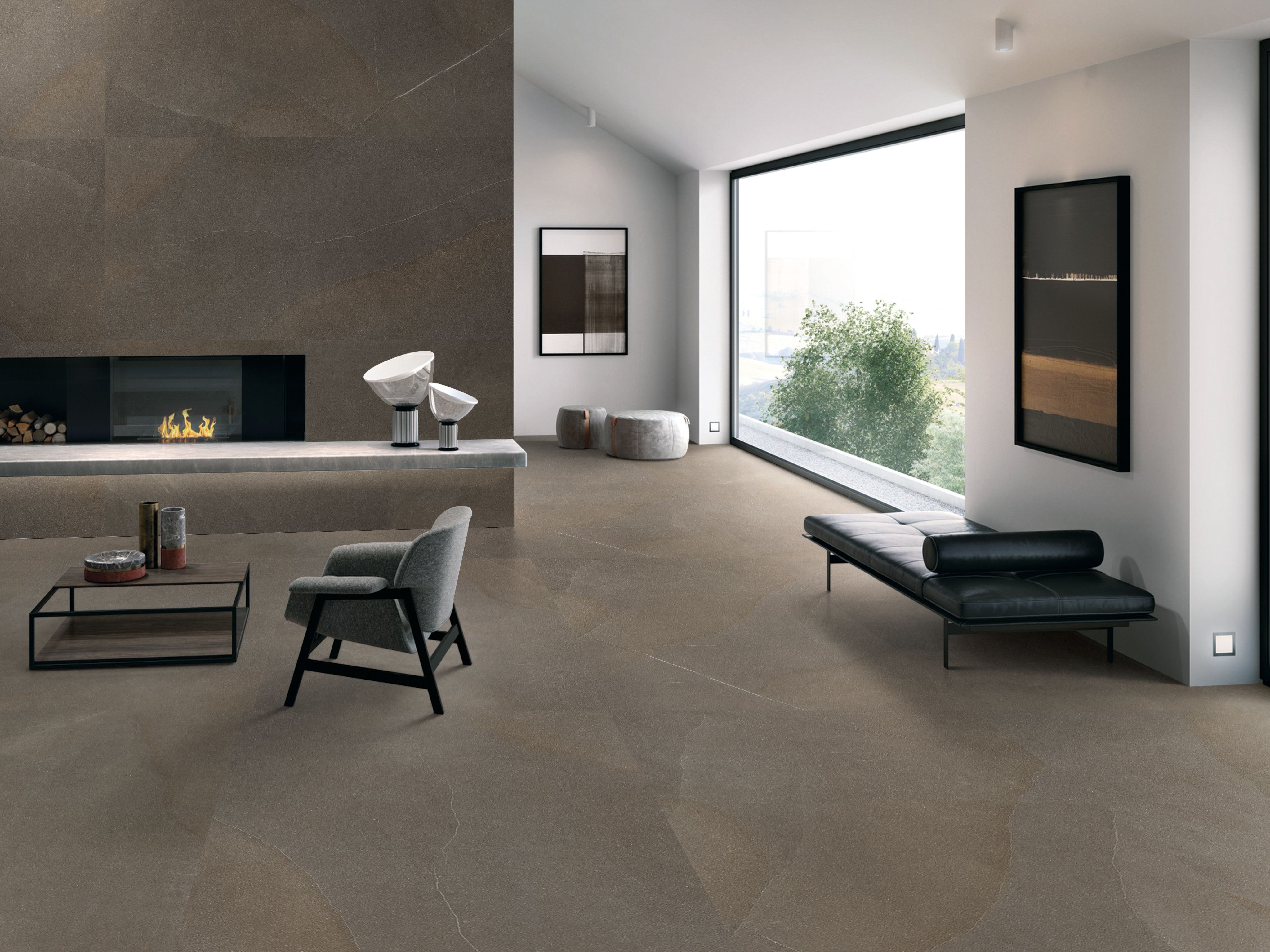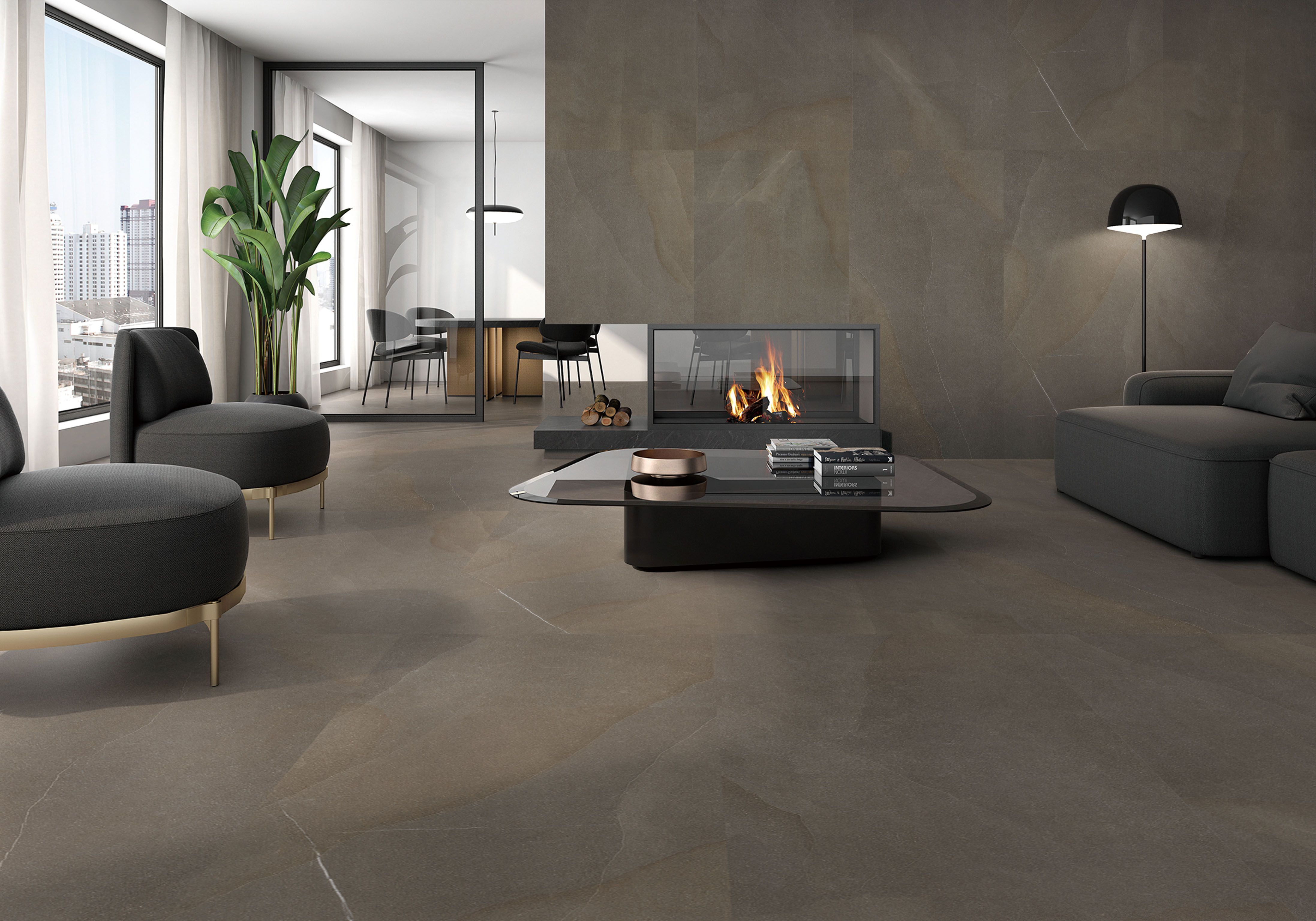 客厅是我最得意的设计之一。地面选的是国际瓷砖品牌伊莉莎白大规格浅咖色仿砂岩瓷砖,纹理自然又带着工业风的粗犷感,关键是耐磨耐造,就算我偶尔在地上铺张图纸画图,也不用担心刮花。墙面没做复杂造型,靠一块国际瓷砖品牌伊莉莎白通顶的同色系瓷砖背景墙撑起气场,内嵌的壁炉是 “伪工科男” 的浪漫 —— 冬天烤火看书,氛围感直接拉满。家具选了低饱和度的灰色系,两把金属脚单人椅和模块沙发,既符合极简审美,又能灵活调整布局(毕竟工程师总喜欢折腾空间结构)。大落地窗是 “采光神器”,搭配轻薄的纱帘,白天让自然光铺满整个空间,晚上则能隔绝外界干扰,适合我在客厅加班做方案时保持专注。